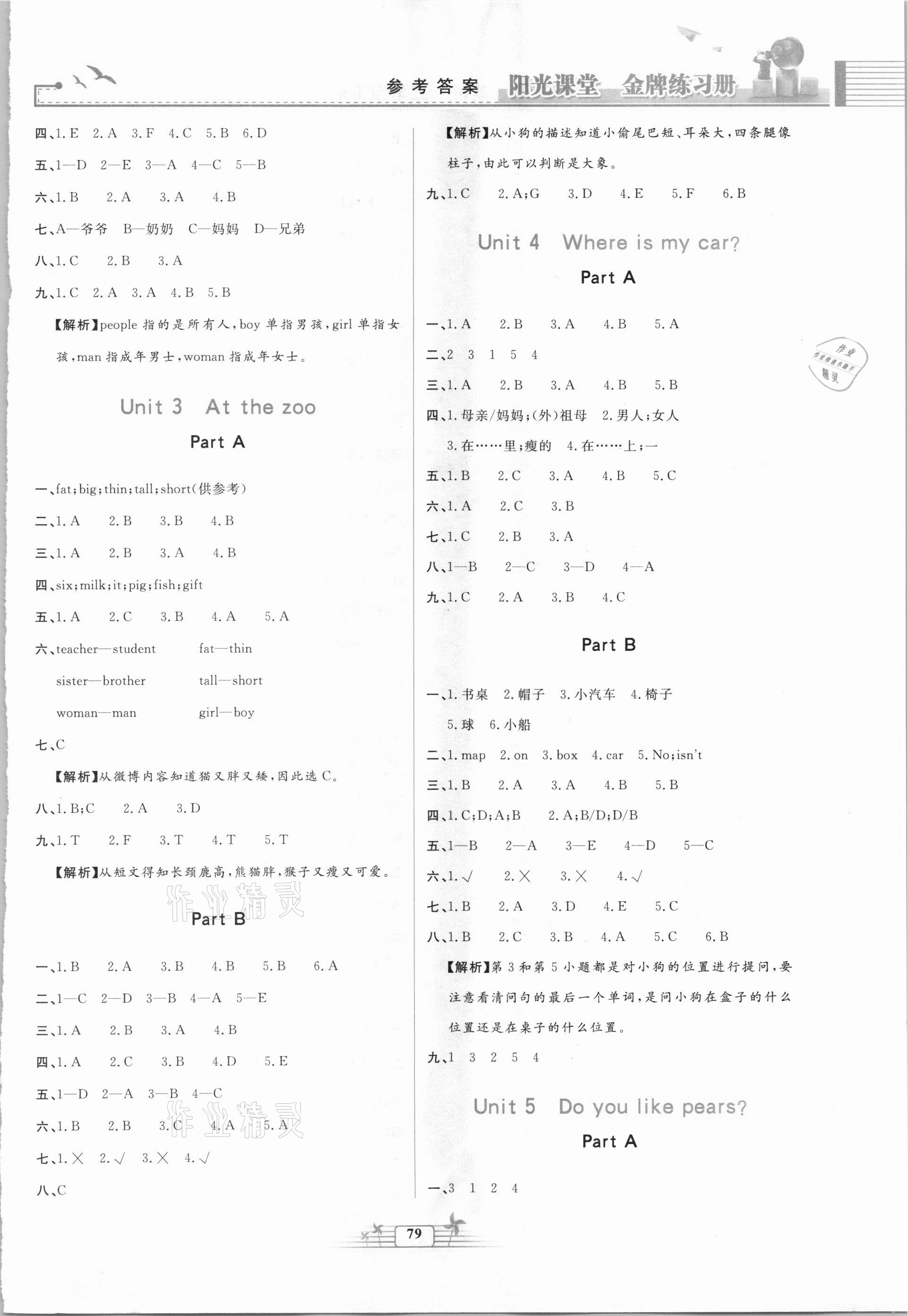 注:目前有些书本章节名称可能整理的还不是很完善,但都是按照顺序排列的,请同学们按照顺序仔细查找。练习册 2021年阳光课堂金牌练习册三年级英语下册人教版河北专版 答案主要是用来给同学们做完题方便对答案用的,请勿直接抄袭。