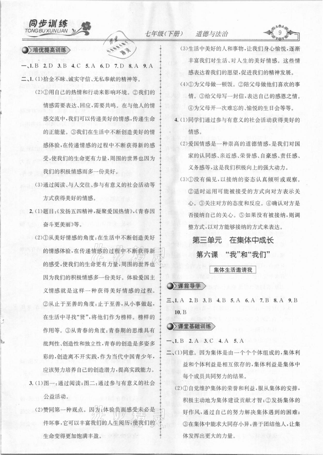 注:目前有些书本章节名称可能整理的还不是很完善,但都是按照顺序排列的,请同学们按照顺序仔细查找。练习册 2021年同步训练创新作业七年级道德与法治下册人教版 答案主要是用来给同学们做完题方便对答案用的,请勿直接抄袭。