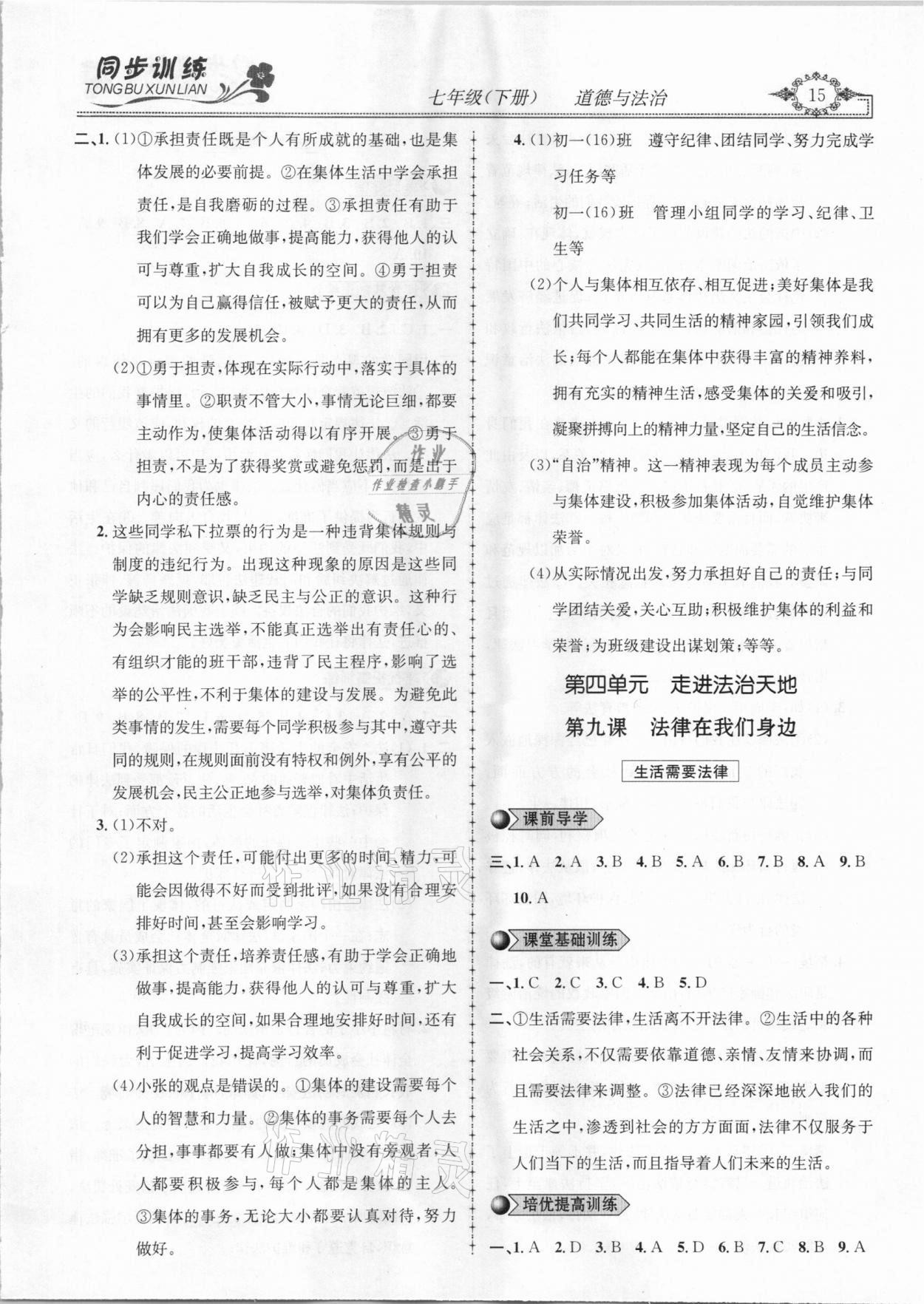 注:目前有些书本章节名称可能整理的还不是很完善,但都是按照顺序排列的,请同学们按照顺序仔细查找。练习册 2021年同步训练创新作业七年级道德与法治下册人教版 答案主要是用来给同学们做完题方便对答案用的,请勿直接抄袭。