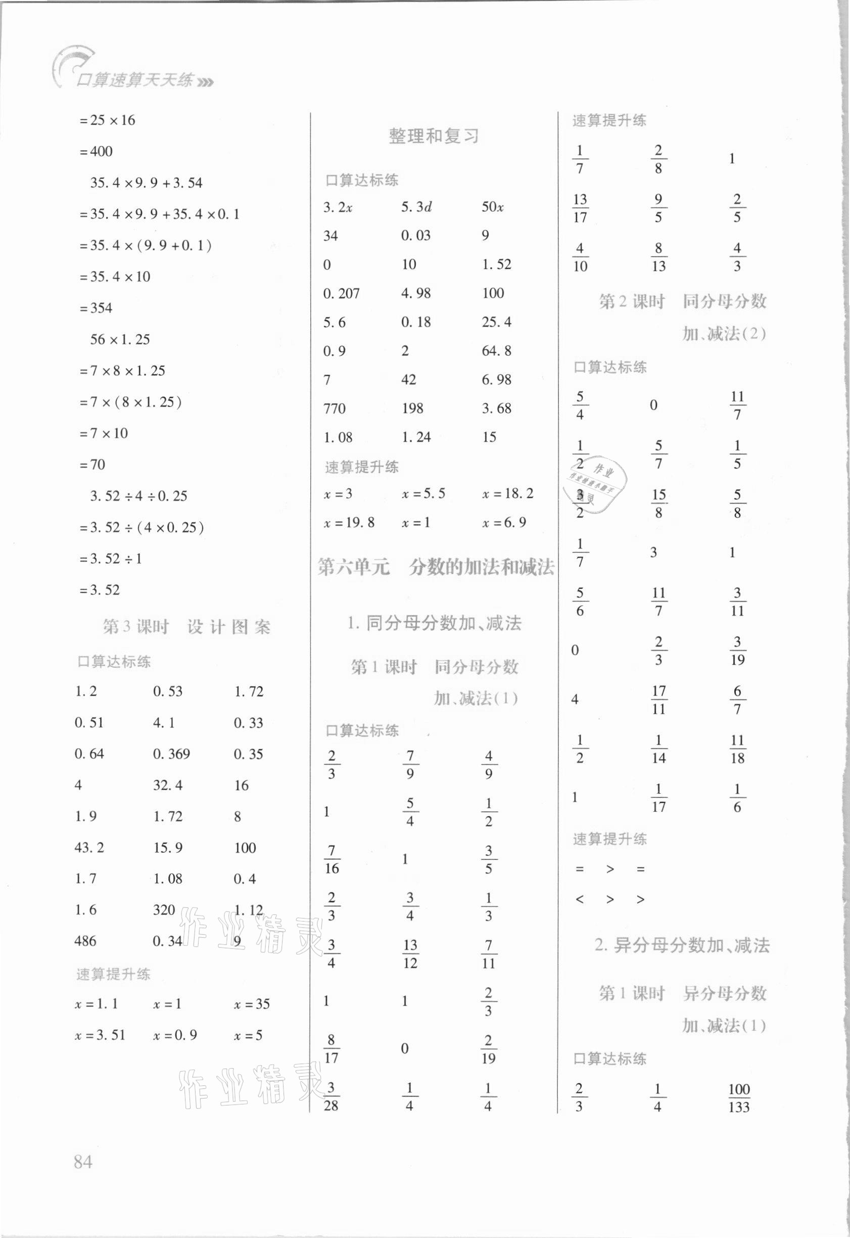 注:目前有些书本章节名称可能整理的还不是很完善,但都是按照顺序排列的,请同学们按照顺序仔细查找。练习册 2021年口算速算天天练五年级下册人教版 答案主要是用来给同学们做完题方便对答案用的,请勿直接抄袭。