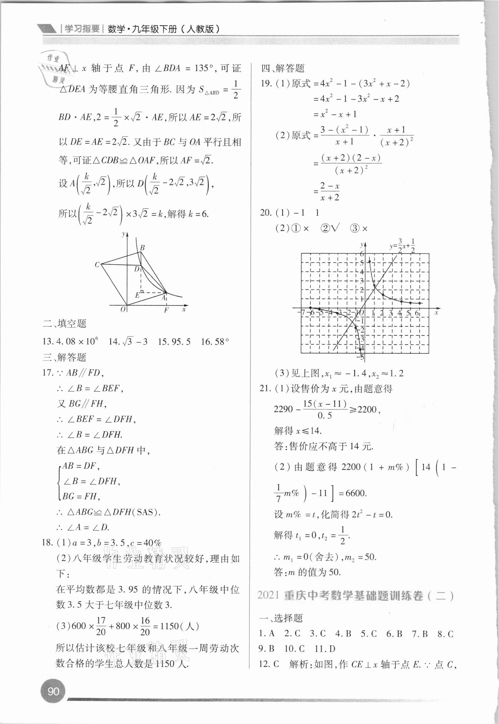 2021年学习指要九年级数学下册人教版重庆市专用