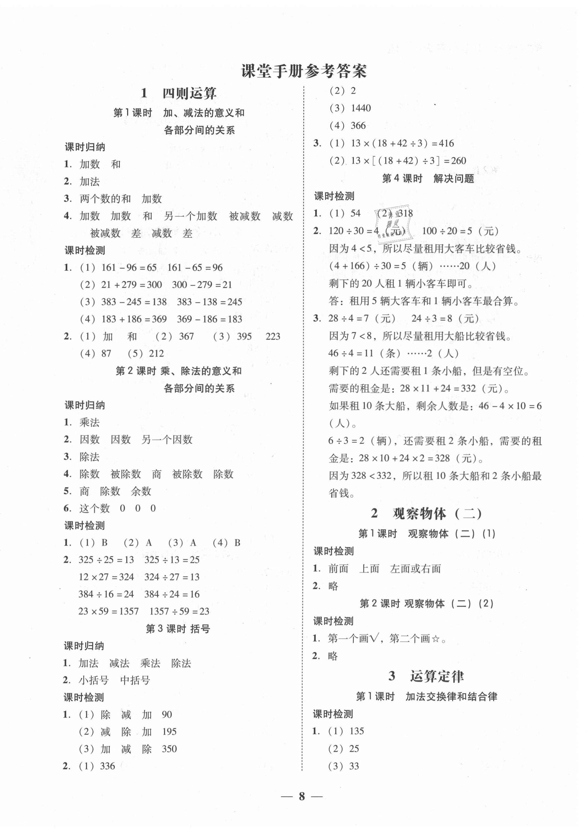 注:目前有些书本章节名称可能整理的还不是很完善,但都是按照顺序排列的,请同学们按照顺序仔细查找。练习册 2021年家校导学四年级数学下册人教版 答案主要是用来给同学们做完题方便对答案用的,请勿直接抄袭。