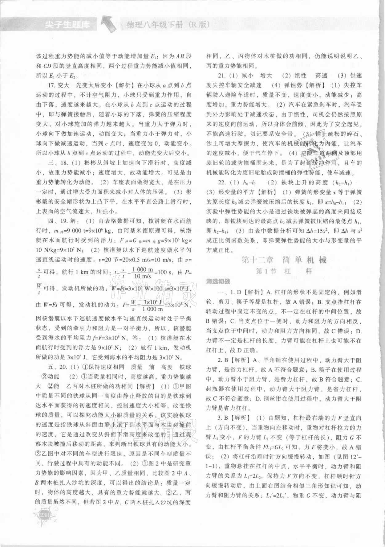 注:目前有些书本章节名称可能整理的还不是很完善,但都是按照顺序排列的,请同学们按照顺序仔细查找。练习册 2021年尖子生题库八年级物理下册人教版 答案主要是用来给同学们做完题方便对答案用的,请勿直接抄袭。