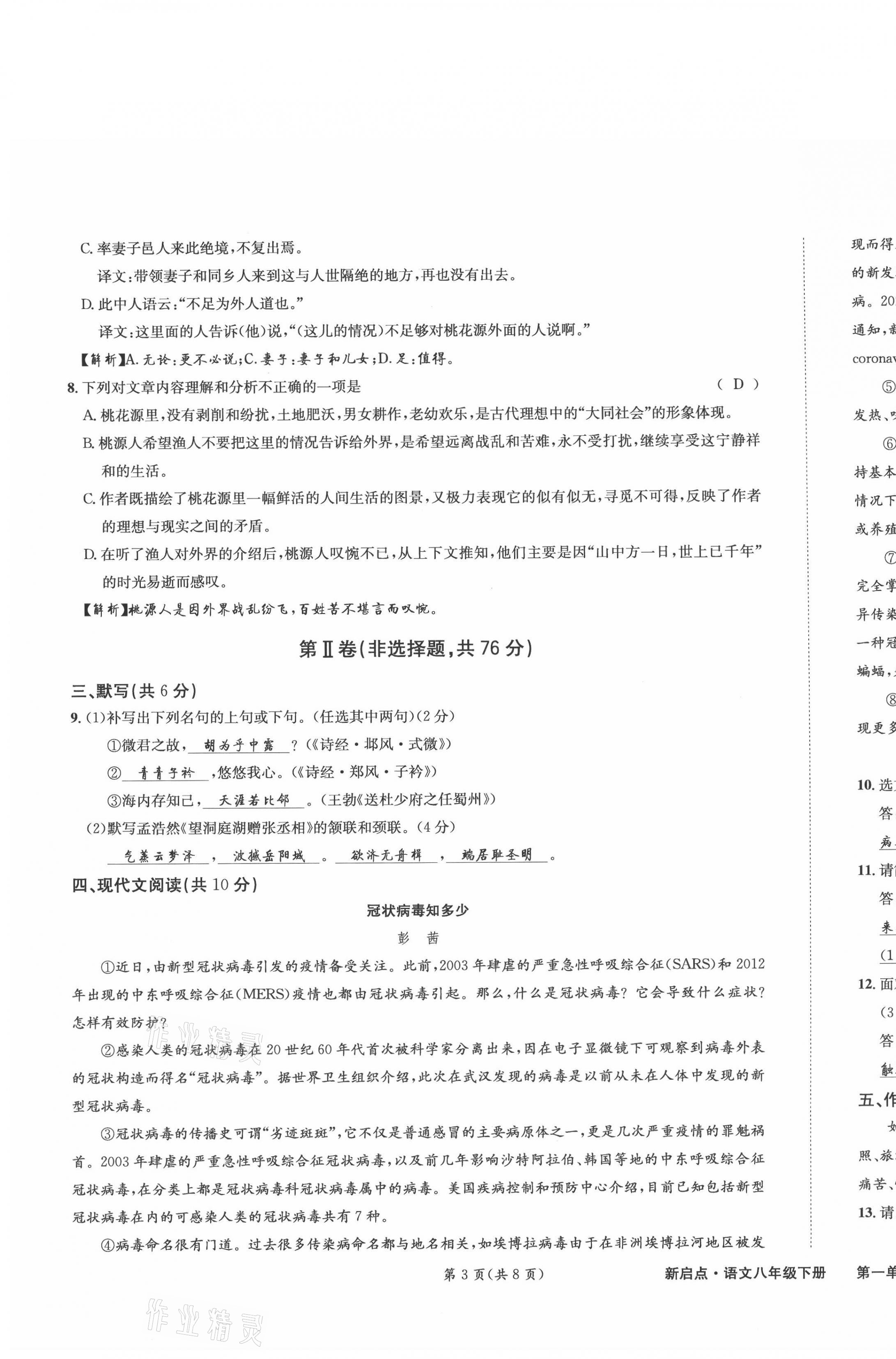 注:目前有些书本章节名称可能整理的还不是很完善,但都是按照顺序排列的,请同学们按照顺序仔细查找。练习册 2021年新启点课时训练八年级语文下册人教版 答案主要是用来给同学们做完题方便对答案用的,请勿直接抄袭。