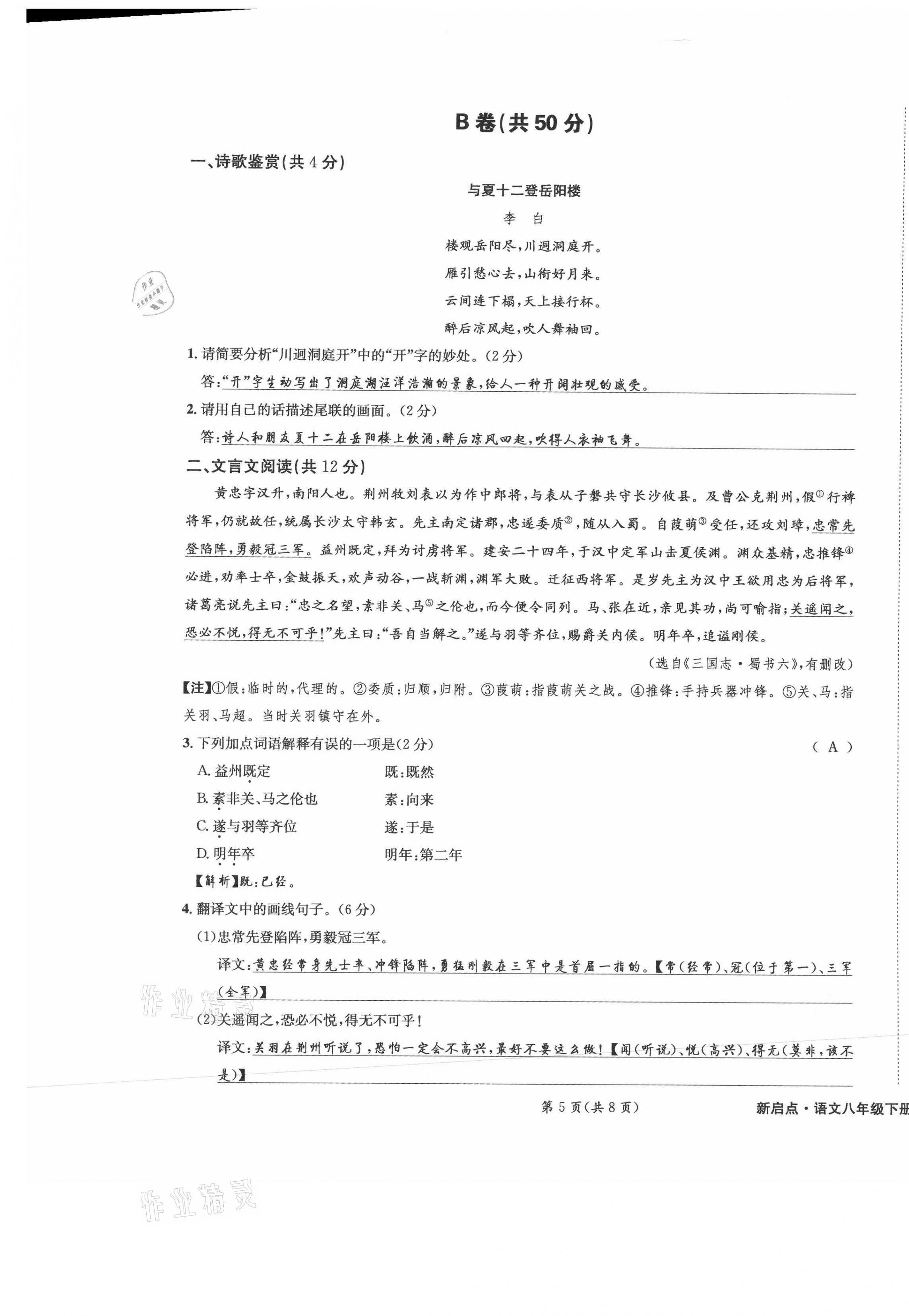注:目前有些书本章节名称可能整理的还不是很完善,但都是按照顺序排列的,请同学们按照顺序仔细查找。练习册 2021年新启点课时训练八年级语文下册人教版 答案主要是用来给同学们做完题方便对答案用的,请勿直接抄袭。