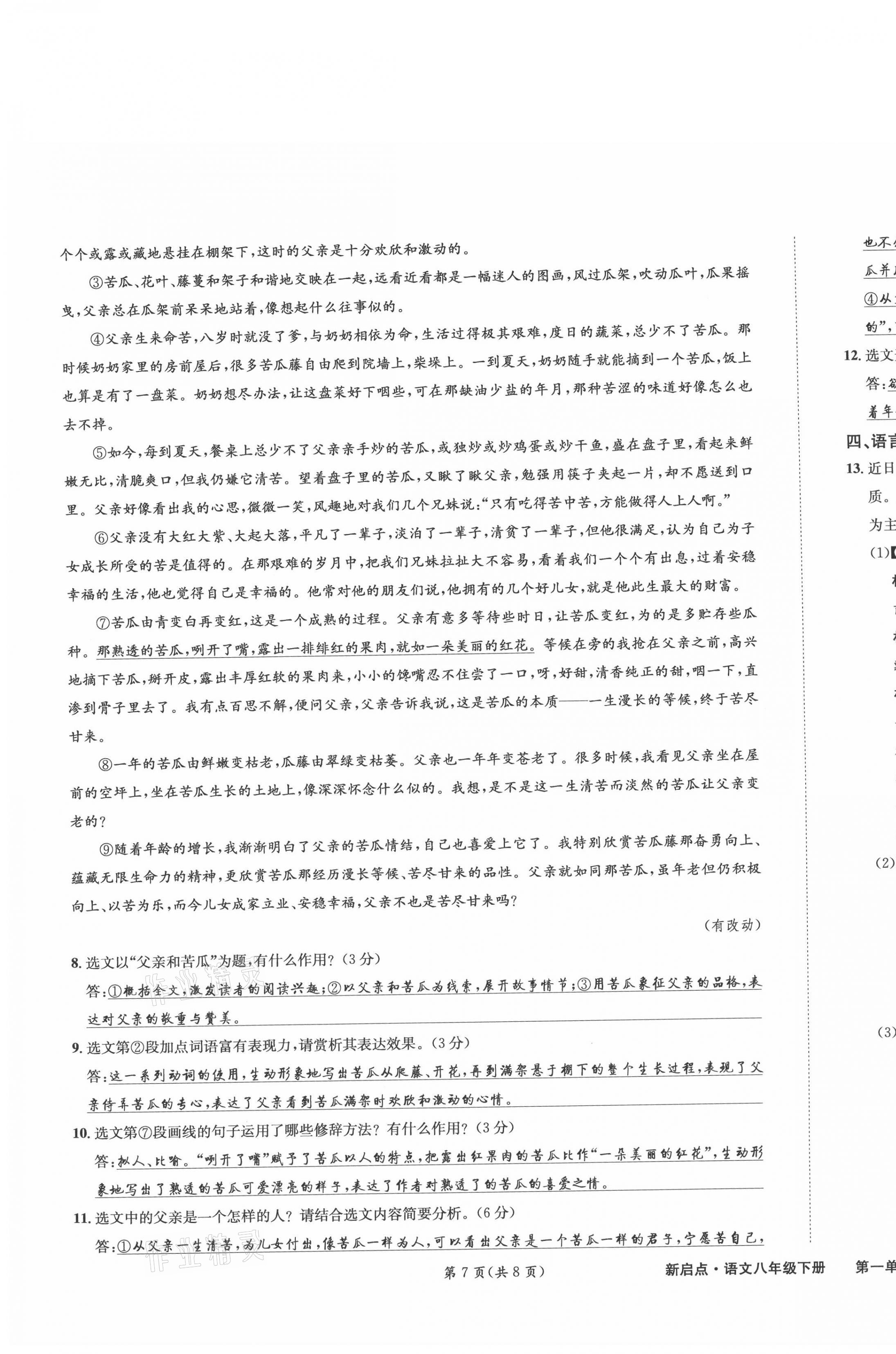 注:目前有些书本章节名称可能整理的还不是很完善,但都是按照顺序排列的,请同学们按照顺序仔细查找。练习册 2021年新启点课时训练八年级语文下册人教版 答案主要是用来给同学们做完题方便对答案用的,请勿直接抄袭。