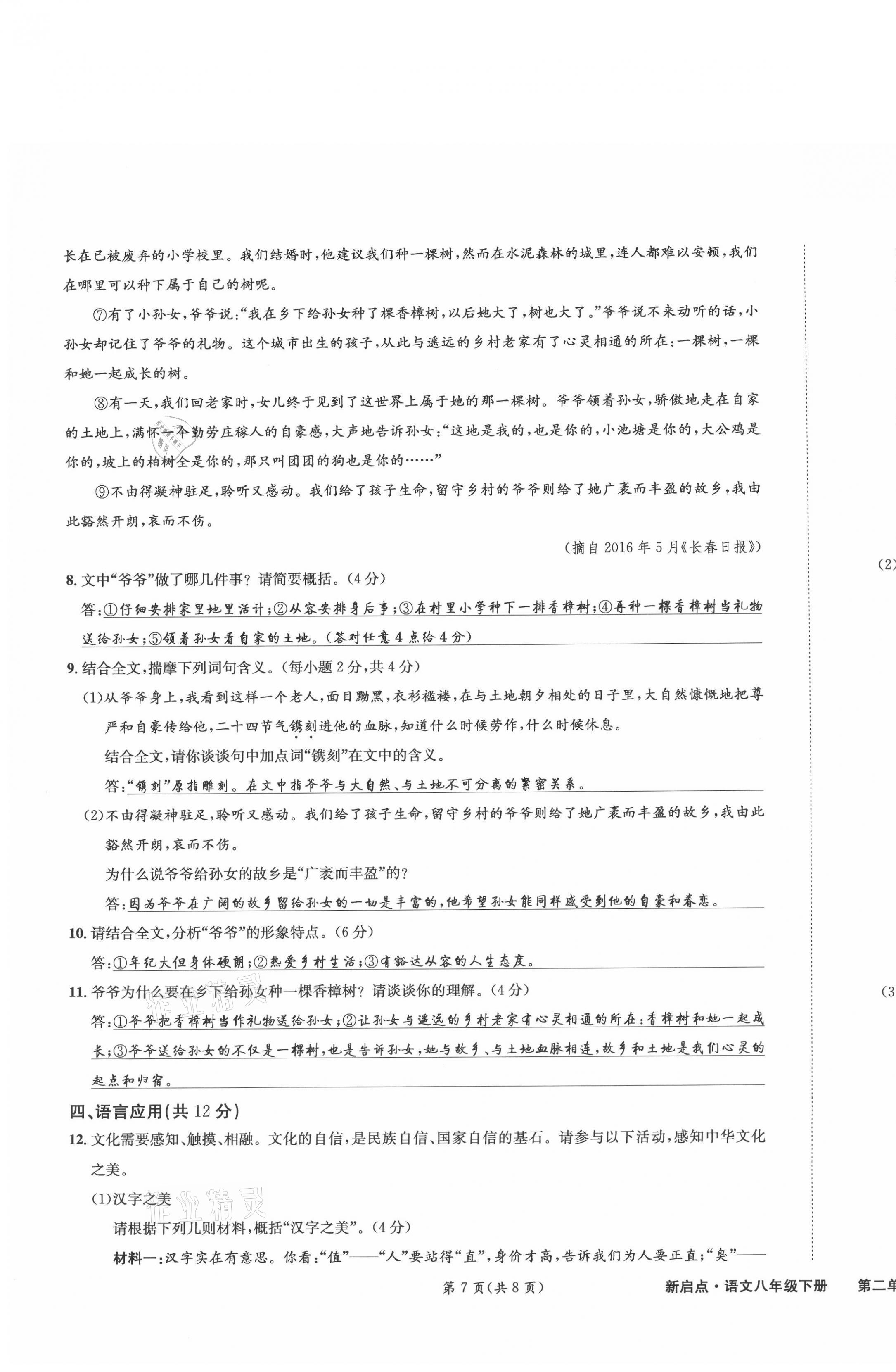 注:目前有些书本章节名称可能整理的还不是很完善,但都是按照顺序排列的,请同学们按照顺序仔细查找。练习册 2021年新启点课时训练八年级语文下册人教版 答案主要是用来给同学们做完题方便对答案用的,请勿直接抄袭。