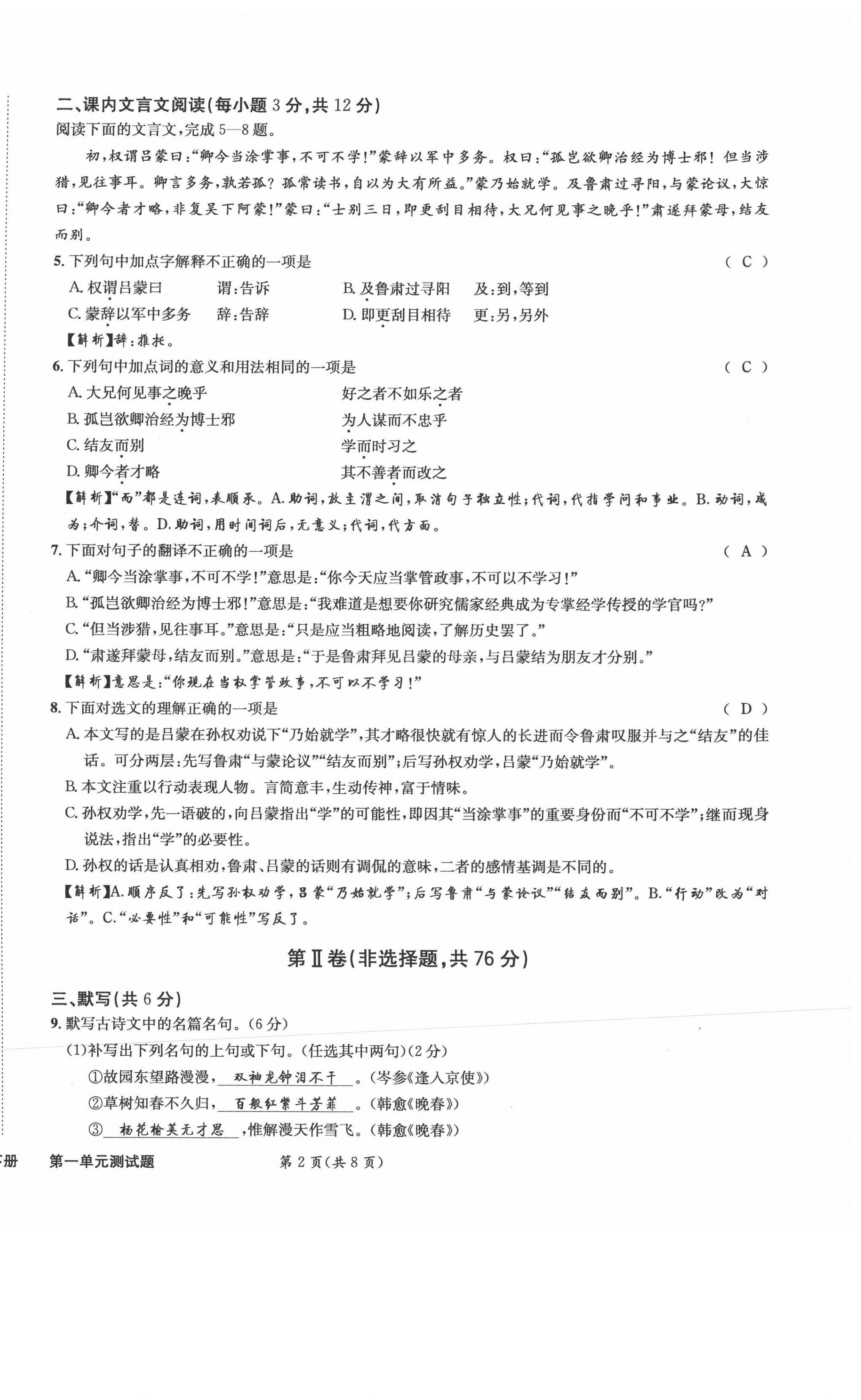 注:目前有些书本章节名称可能整理的还不是很完善,但都是按照顺序排列的,请同学们按照顺序仔细查找。练习册 2021年新启点课时训练七年级语文下册人教版 答案主要是用来给同学们做完题方便对答案用的,请勿直接抄袭。