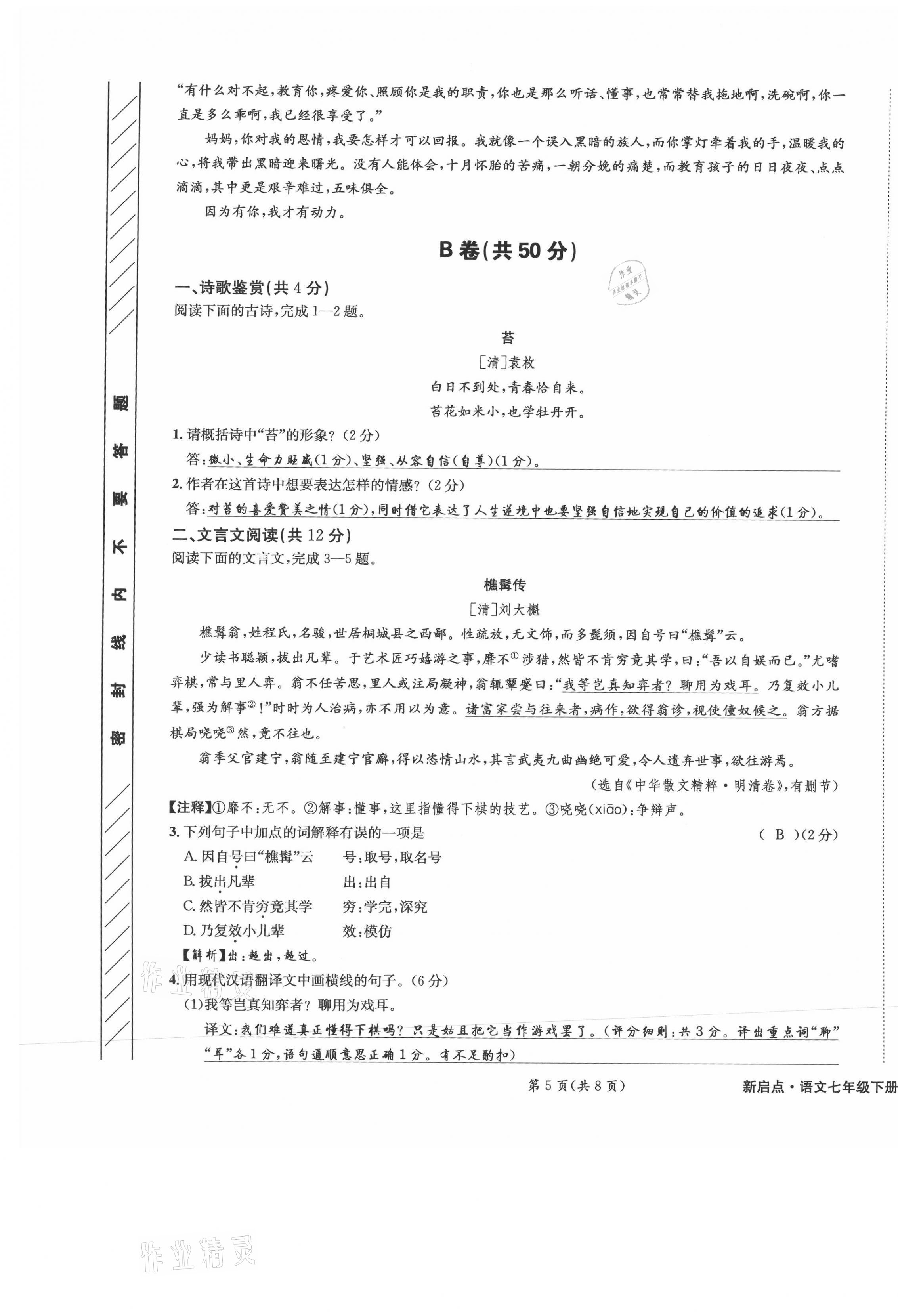 注:目前有些书本章节名称可能整理的还不是很完善,但都是按照顺序排列的,请同学们按照顺序仔细查找。练习册 2021年新启点课时训练七年级语文下册人教版 答案主要是用来给同学们做完题方便对答案用的,请勿直接抄袭。