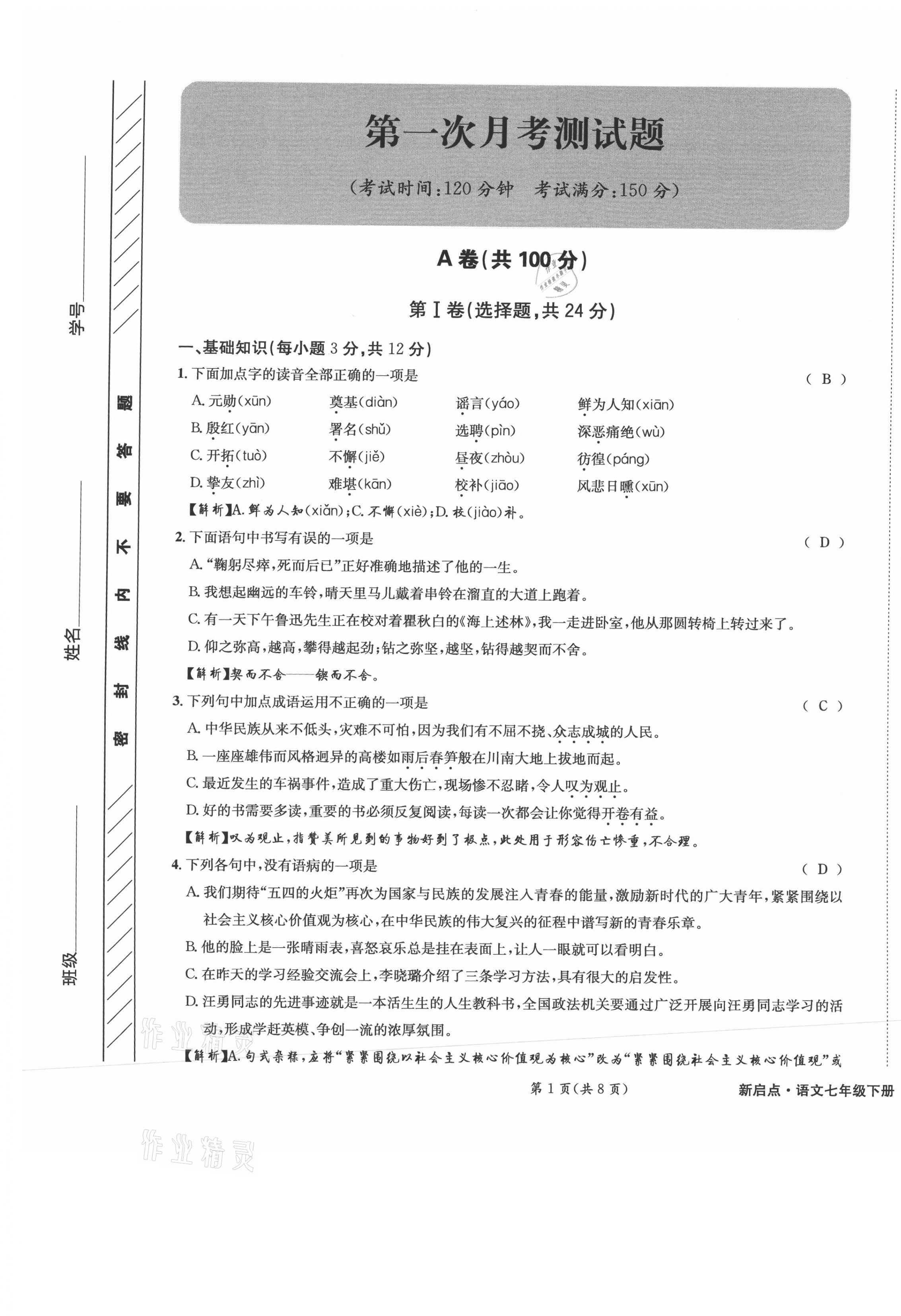 注:目前有些书本章节名称可能整理的还不是很完善,但都是按照顺序排列的,请同学们按照顺序仔细查找。练习册 2021年新启点课时训练七年级语文下册人教版 答案主要是用来给同学们做完题方便对答案用的,请勿直接抄袭。