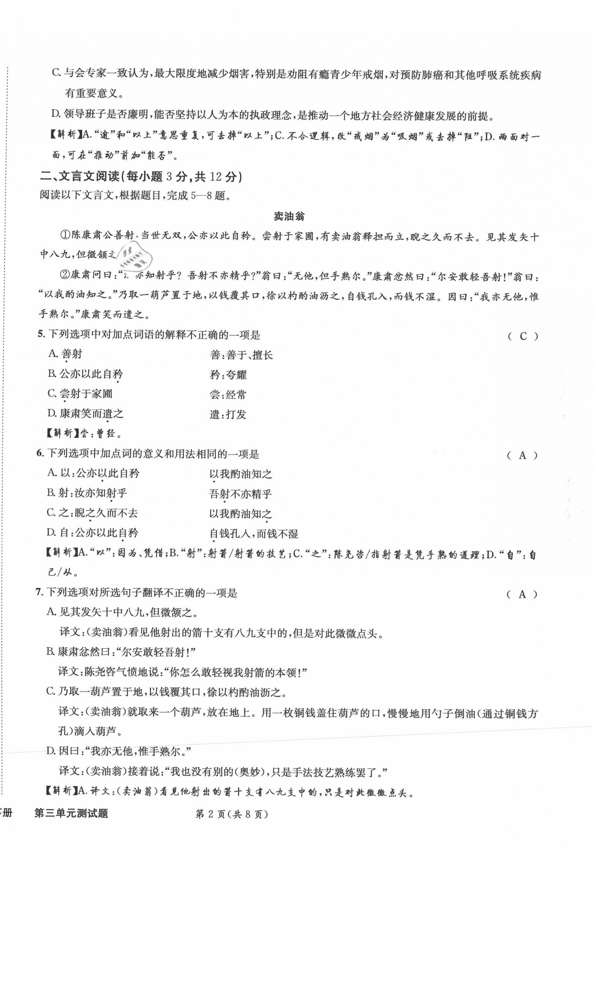 - 参考答案第8页