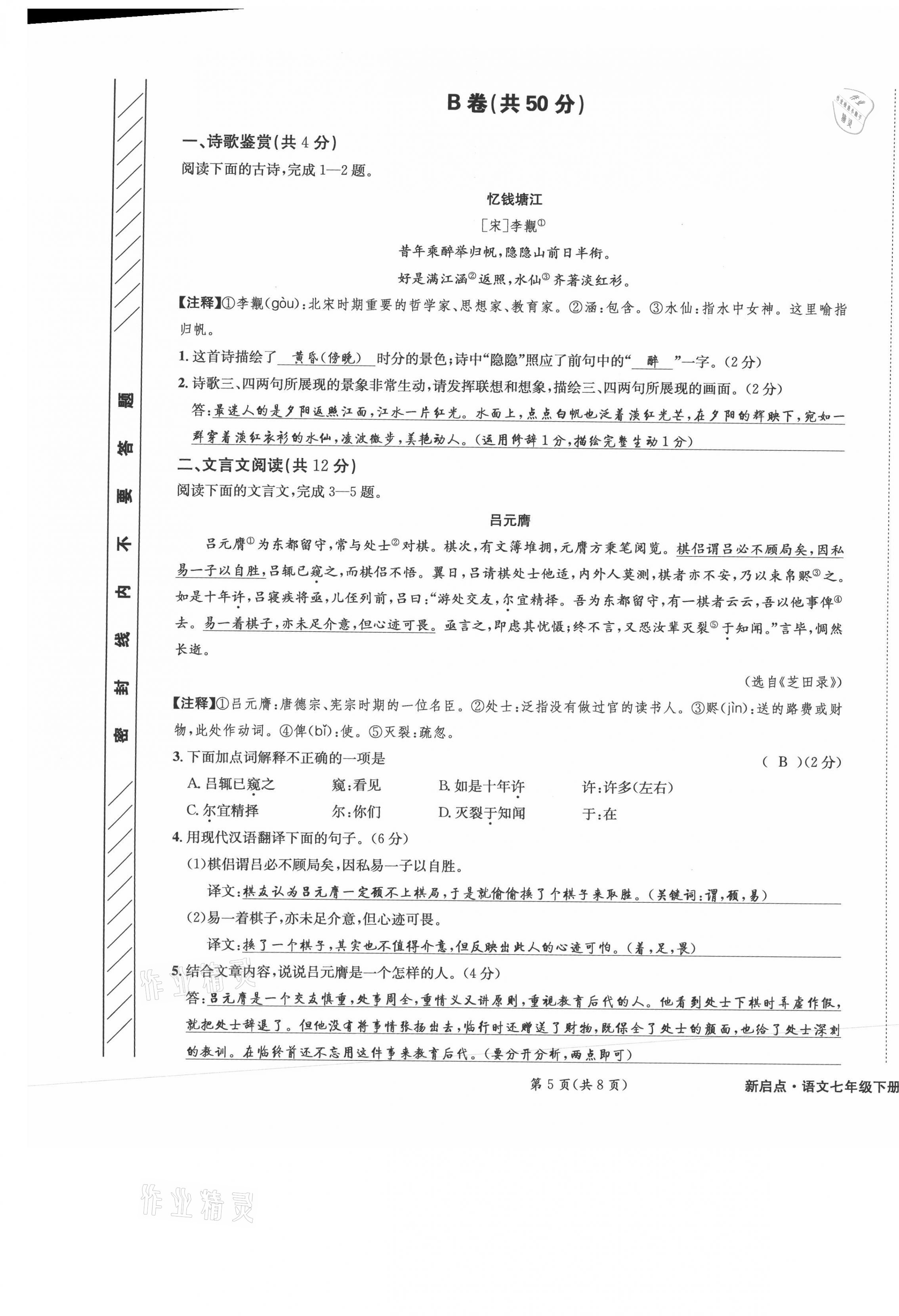 注:目前有些书本章节名称可能整理的还不是很完善,但都是按照顺序排列的,请同学们按照顺序仔细查找。练习册 2021年新启点课时训练七年级语文下册人教版 答案主要是用来给同学们做完题方便对答案用的,请勿直接抄袭。