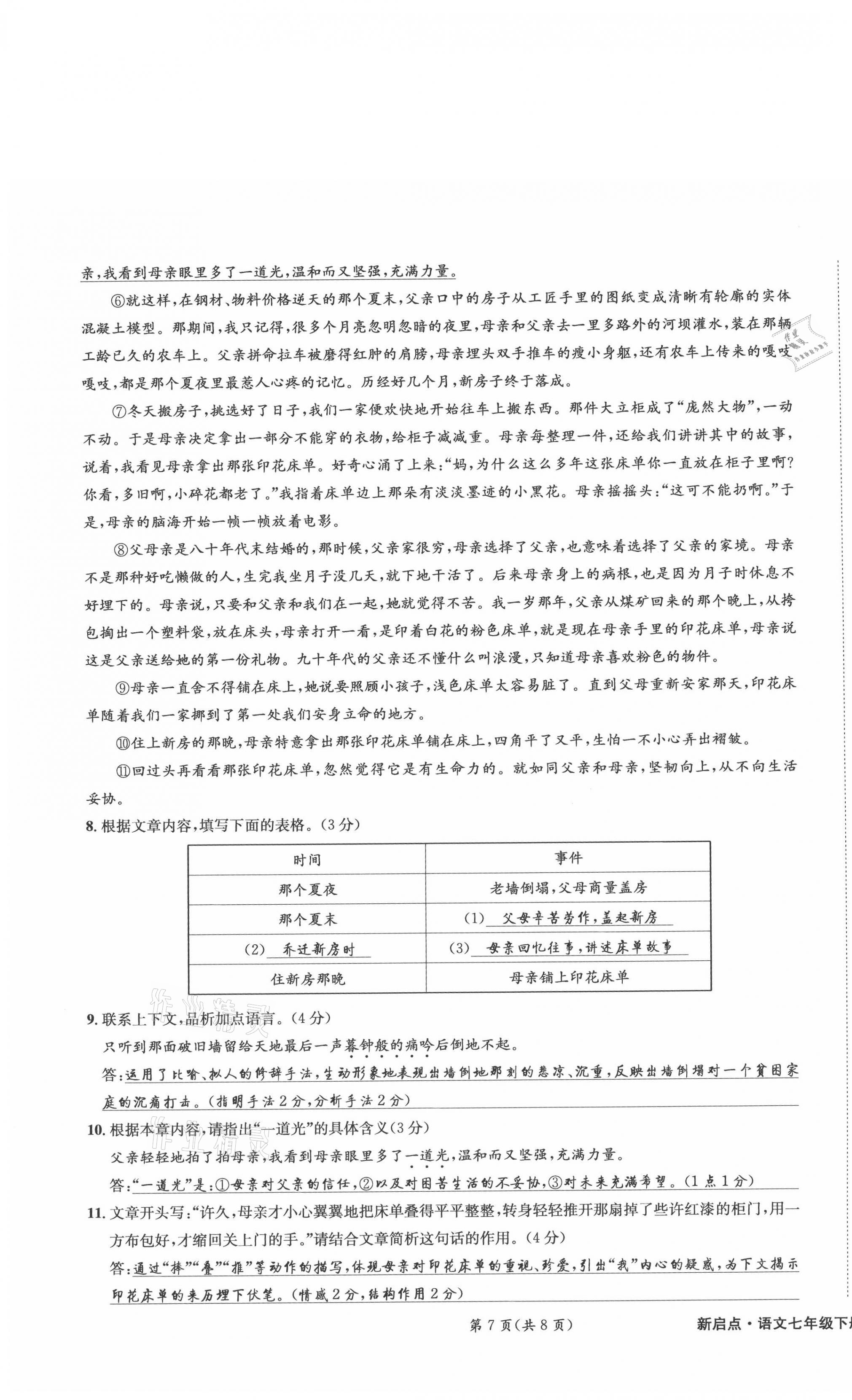 2021年新启点课时训练七年级语文下册人教版