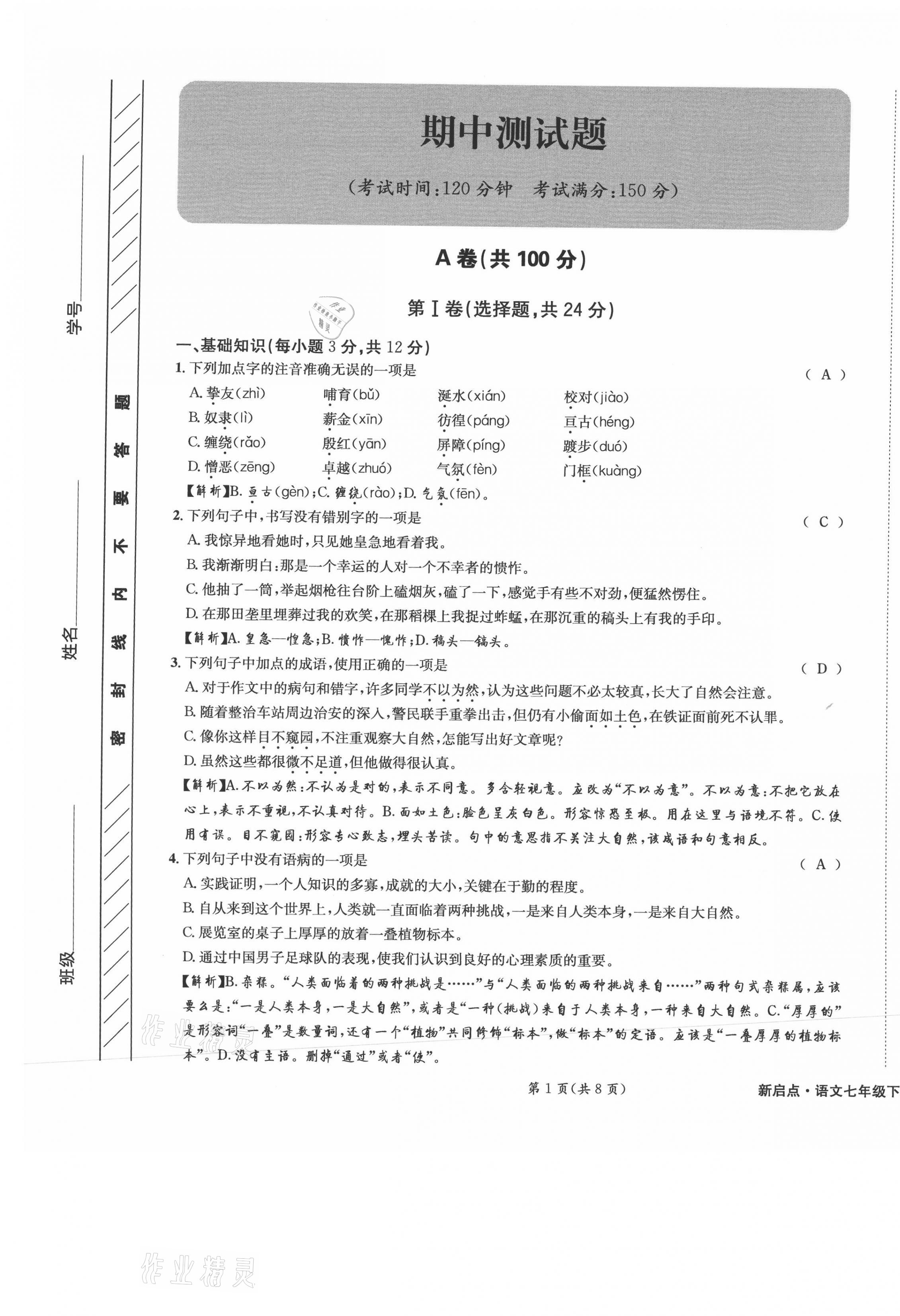 注:目前有些书本章节名称可能整理的还不是很完善,但都是按照顺序排列的,请同学们按照顺序仔细查找。练习册 2021年新启点课时训练七年级语文下册人教版 答案主要是用来给同学们做完题方便对答案用的,请勿直接抄袭。