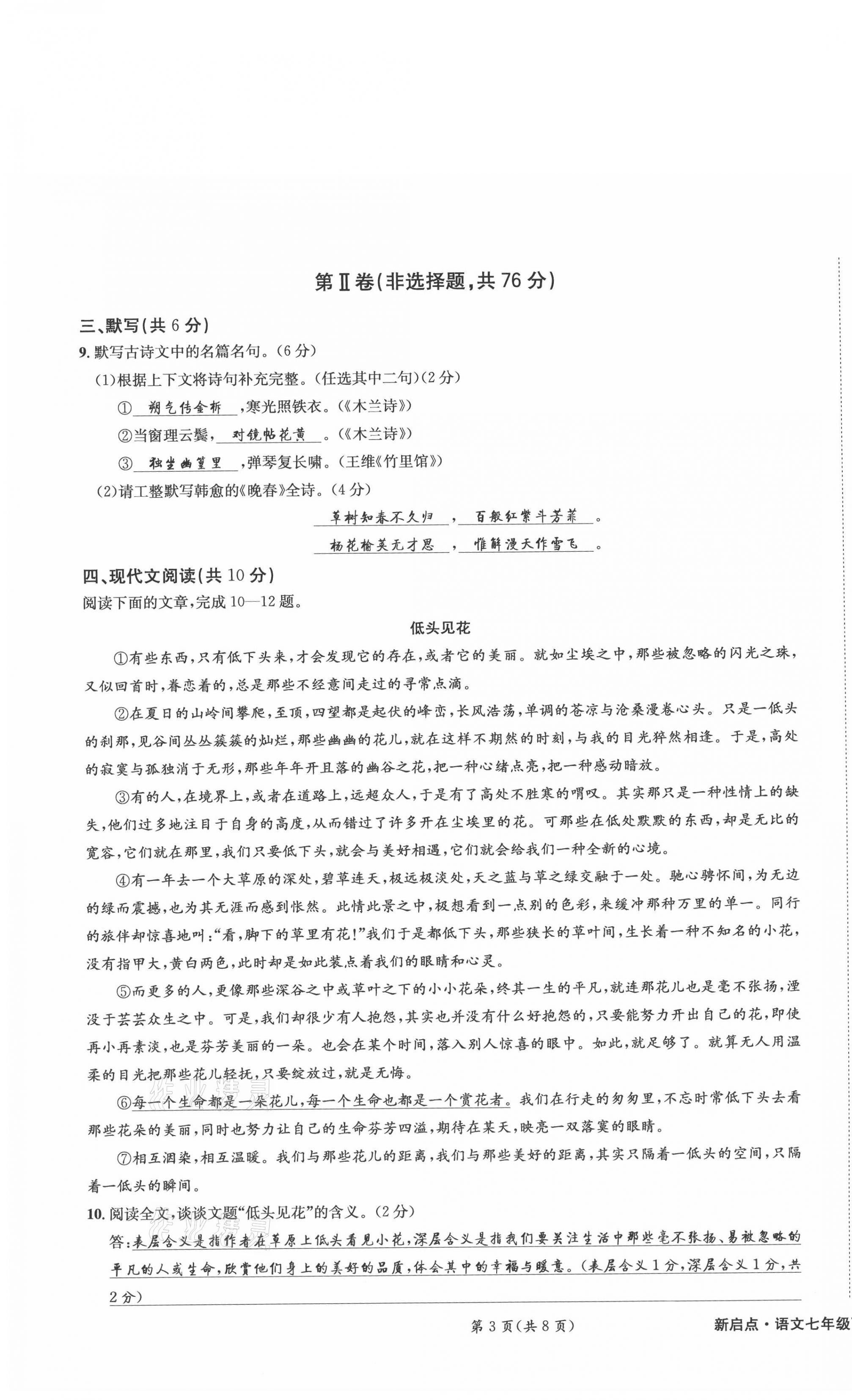 注:目前有些书本章节名称可能整理的还不是很完善,但都是按照顺序排列的,请同学们按照顺序仔细查找。练习册 2021年新启点课时训练七年级语文下册人教版 答案主要是用来给同学们做完题方便对答案用的,请勿直接抄袭。