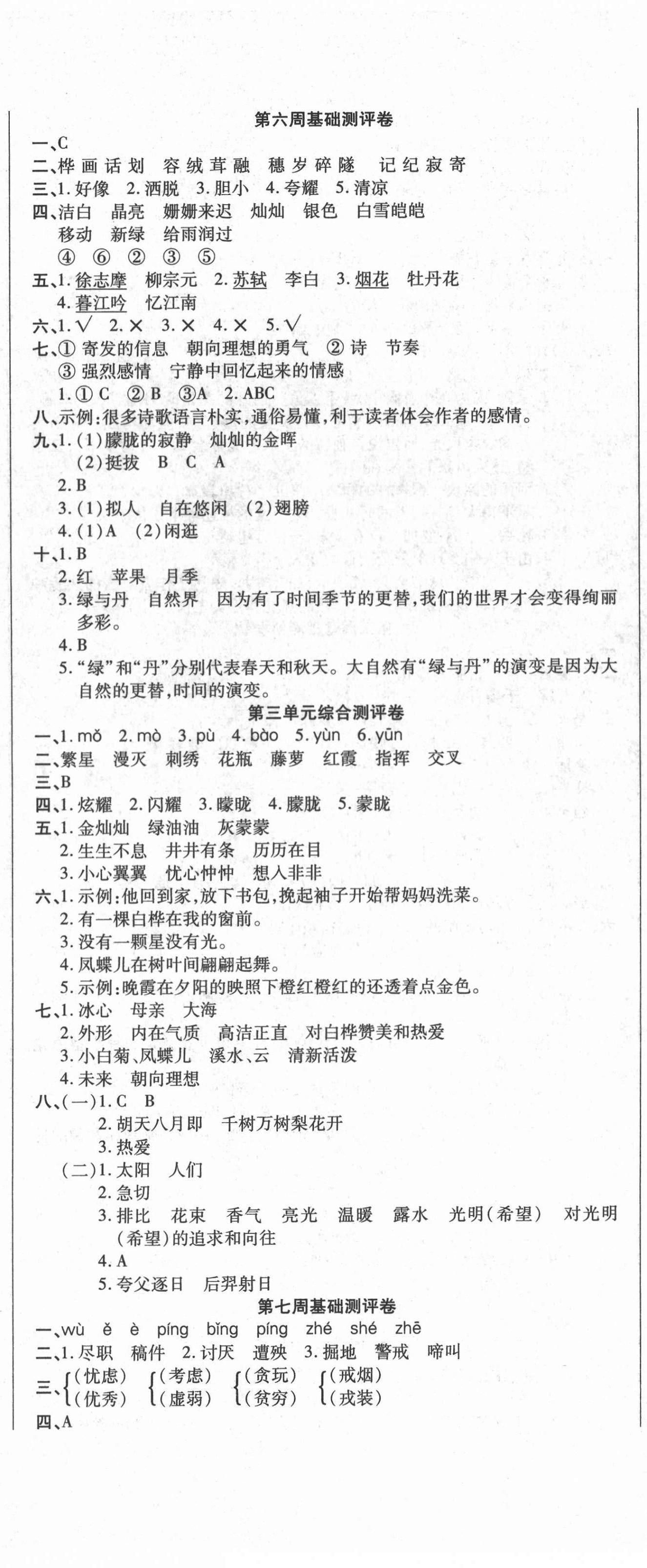 注:目前有些书本章节名称可能整理的还不是很完善,但都是按照顺序排列的,请同学们按照顺序仔细查找。练习册 2021年聚优练考卷四年级语文下册人教版 答案主要是用来给同学们做完题方便对答案用的,请勿直接抄袭。