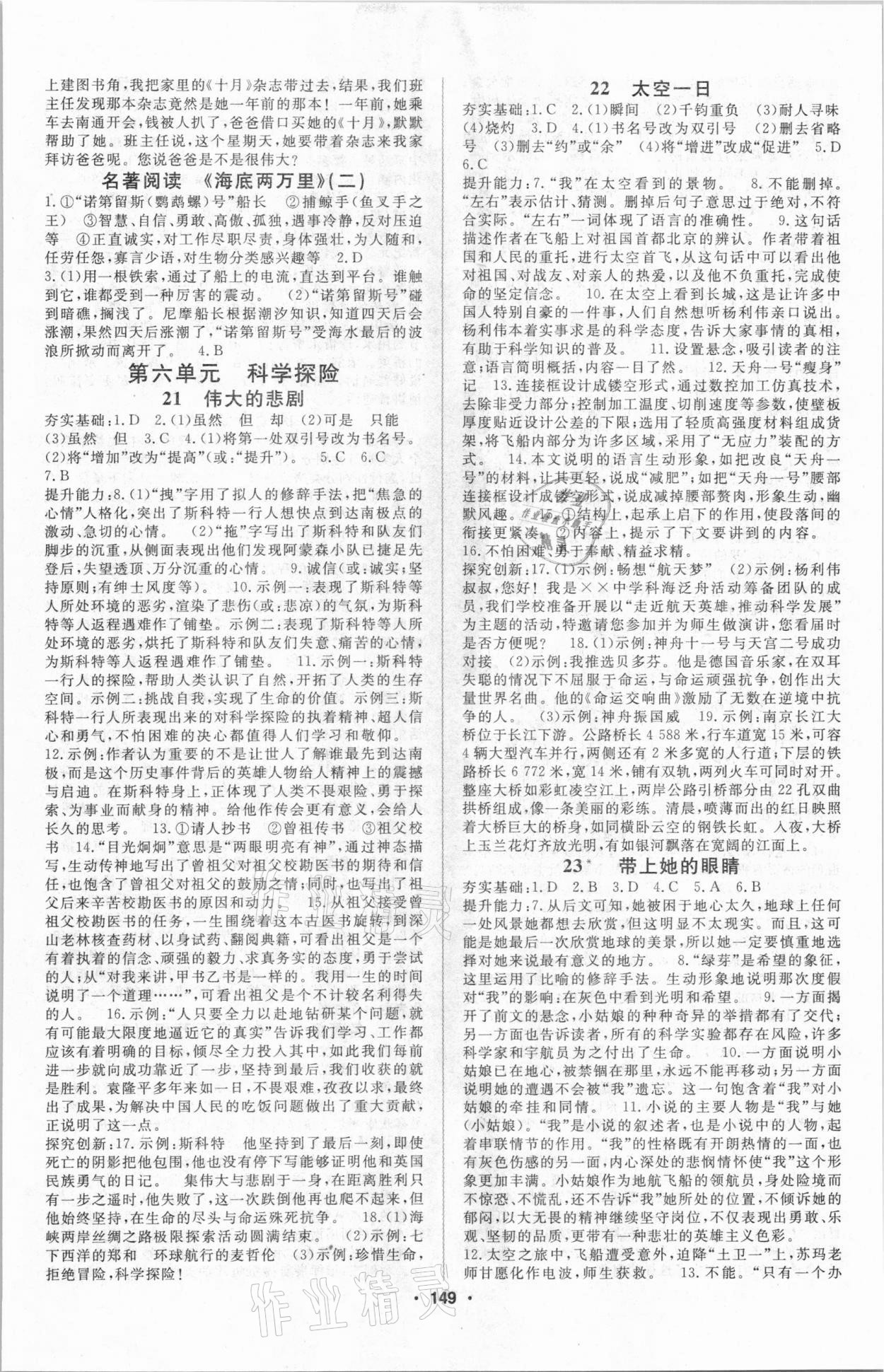 注:目前有些书本章节名称可能整理的还不是很完善,但都是按照顺序排列的,请同学们按照顺序仔细查找。练习册 2021年名师作业本七年级语文下册人教版 答案主要是用来给同学们做完题方便对答案用的,请勿直接抄袭。