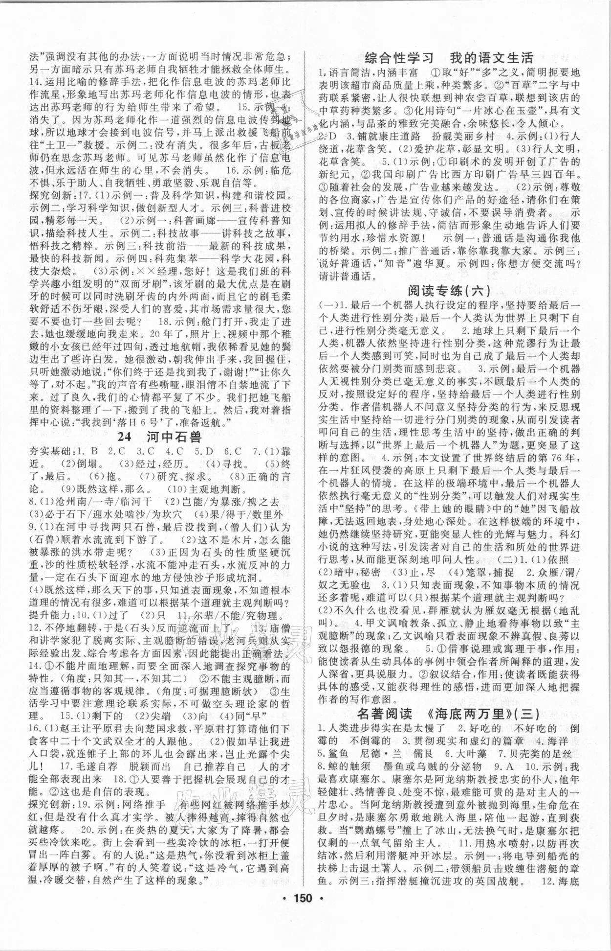 注:目前有些书本章节名称可能整理的还不是很完善,但都是按照顺序排列的,请同学们按照顺序仔细查找。练习册 2021年名师作业本七年级语文下册人教版 答案主要是用来给同学们做完题方便对答案用的,请勿直接抄袭。