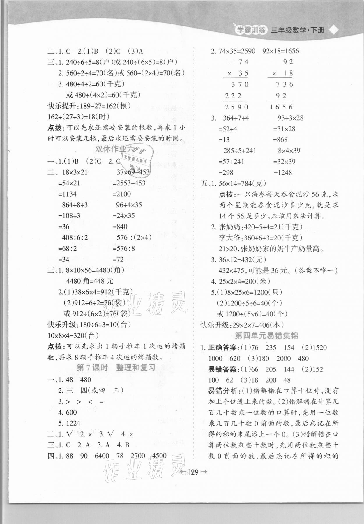 注:目前有些书本章节名称可能整理的还不是很完善,但都是按照顺序排列的,请同学们按照顺序仔细查找。练习册 2021年学霸训练三年级数学下册人教版 答案主要是用来给同学们做完题方便对答案用的,请勿直接抄袭。