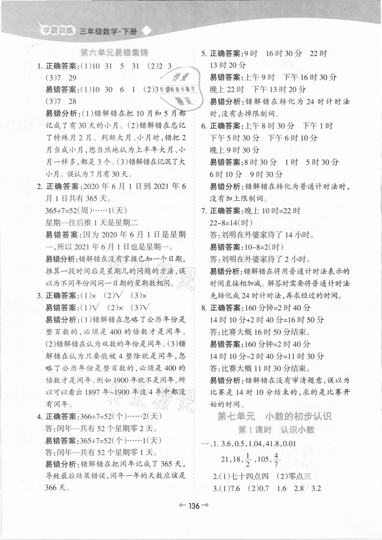注:目前有些书本章节名称可能整理的还不是很完善,但都是按照顺序排列的,请同学们按照顺序仔细查找。练习册 2021年学霸训练三年级数学下册人教版 答案主要是用来给同学们做完题方便对答案用的,请勿直接抄袭。