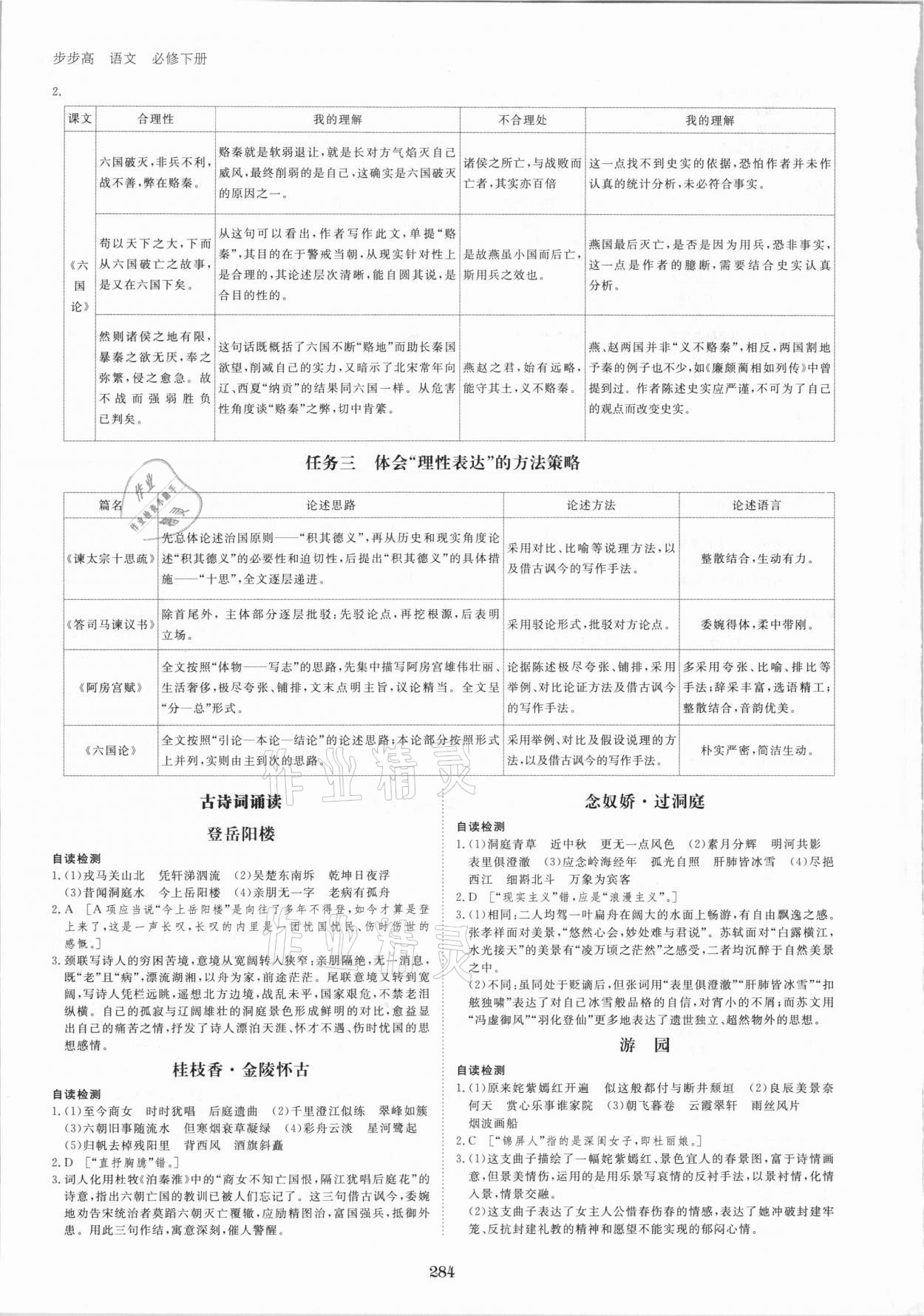 注:目前有些书本章节名称可能整理的还不是很完善,但都是按照顺序排列的,请同学们按照顺序仔细查找。练习册 2021年步步高学习笔记语文必修下册 答案主要是用来给同学们做完题方便对答案用的,请勿直接抄袭。