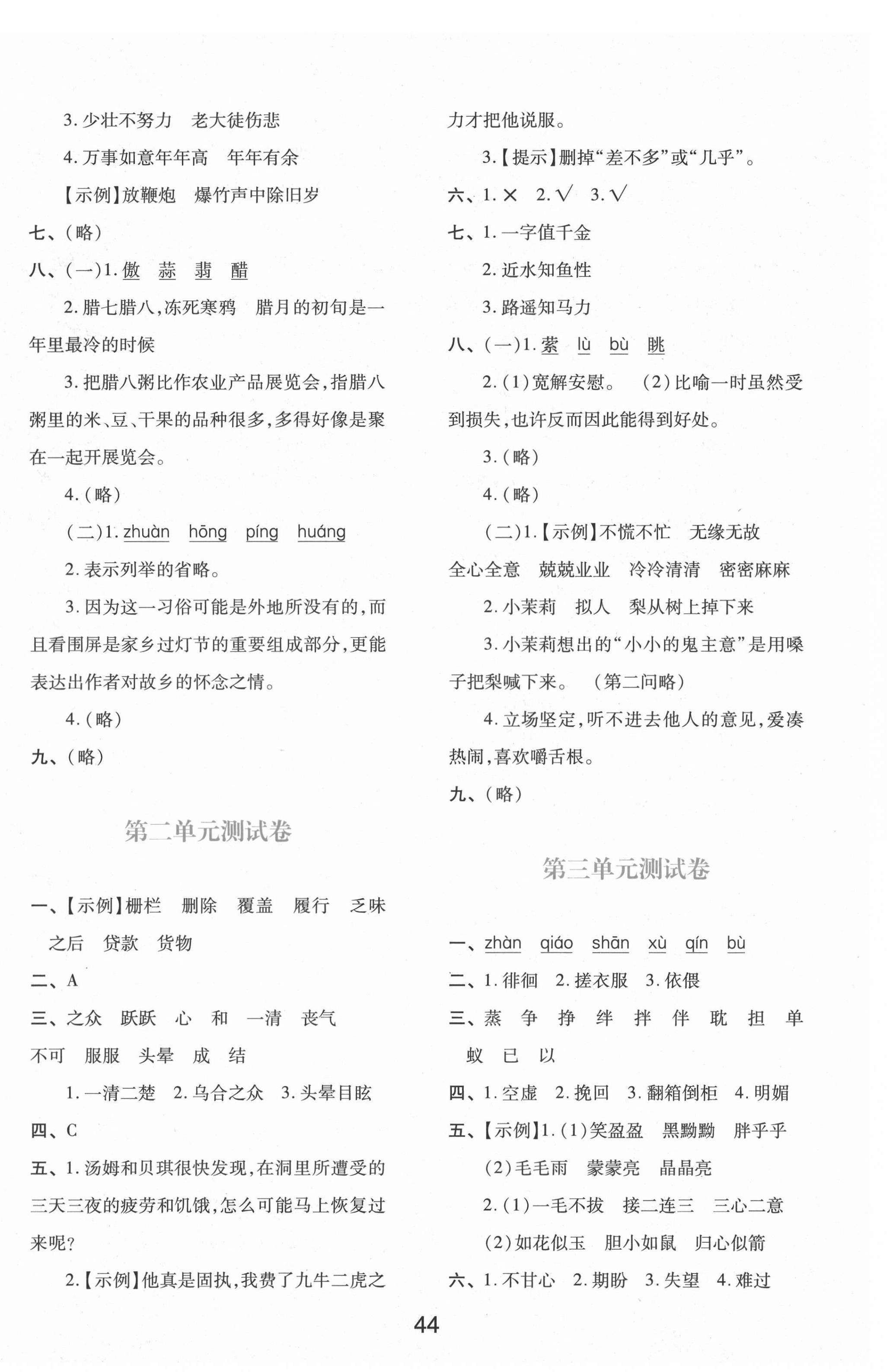注:目前有些书本章节名称可能整理的还不是很完善,但都是按照顺序排列的,请同学们按照顺序仔细查找。练习册 2021年新课程学习与评价六年级语文下册人教版 答案主要是用来给同学们做完题方便对答案用的,请勿直接抄袭。