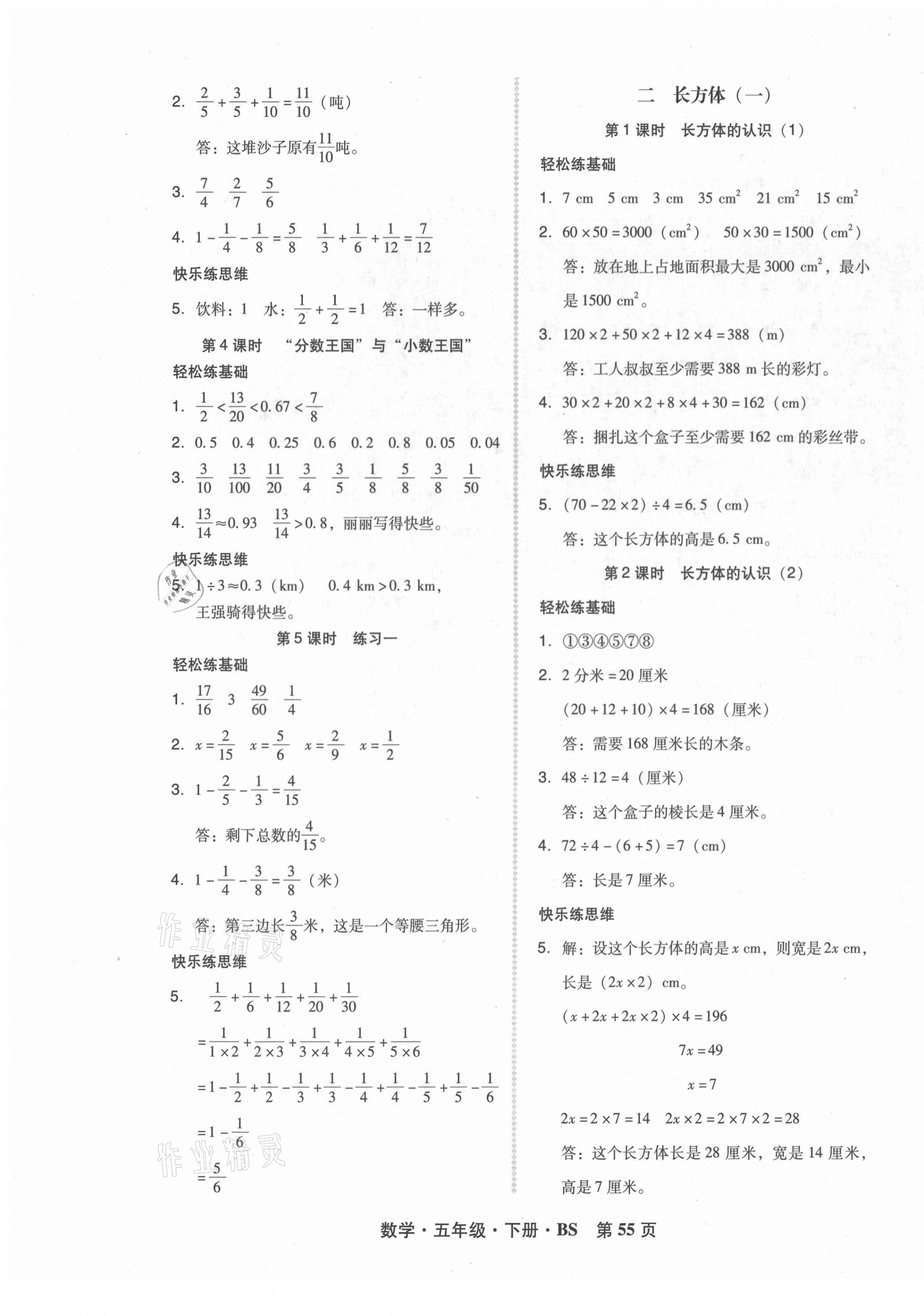 注:目前有些书本章节名称可能整理的还不是很完善,但都是按照顺序排列的,请同学们按照顺序仔细查找。练习册 2021年状元坊全程突破导练测五年级数学下册北师大版 答案主要是用来给同学们做完题方便对答案用的,请勿直接抄袭。