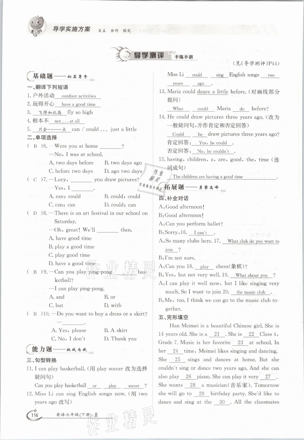 注:目前有些书本章节名称可能整理的还不是很完善,但都是按照顺序排列的,请同学们按照顺序仔细查找。练习册 2021年金太阳导学案七年级英语下册人教版 答案主要是用来给同学们做完题方便对答案用的,请勿直接抄袭。