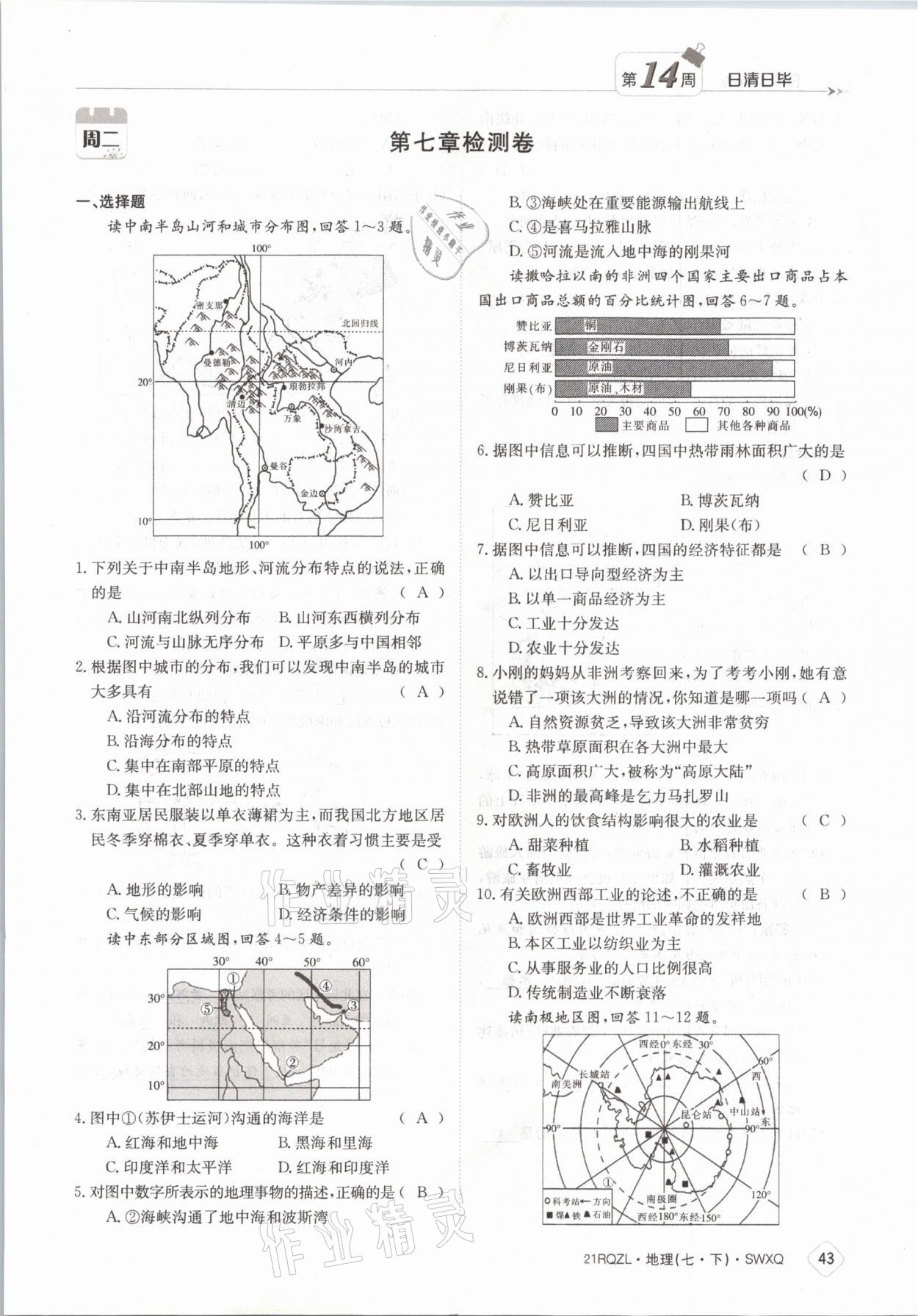 注:目前有些书本章节名称可能整理的还不是很完善,但都是按照顺序排列的,请同学们按照顺序仔细查找。练习册 2021年日清周练七年级地理下册商务星球版 答案主要是用来给同学们做完题方便对答案用的,请勿直接抄袭。