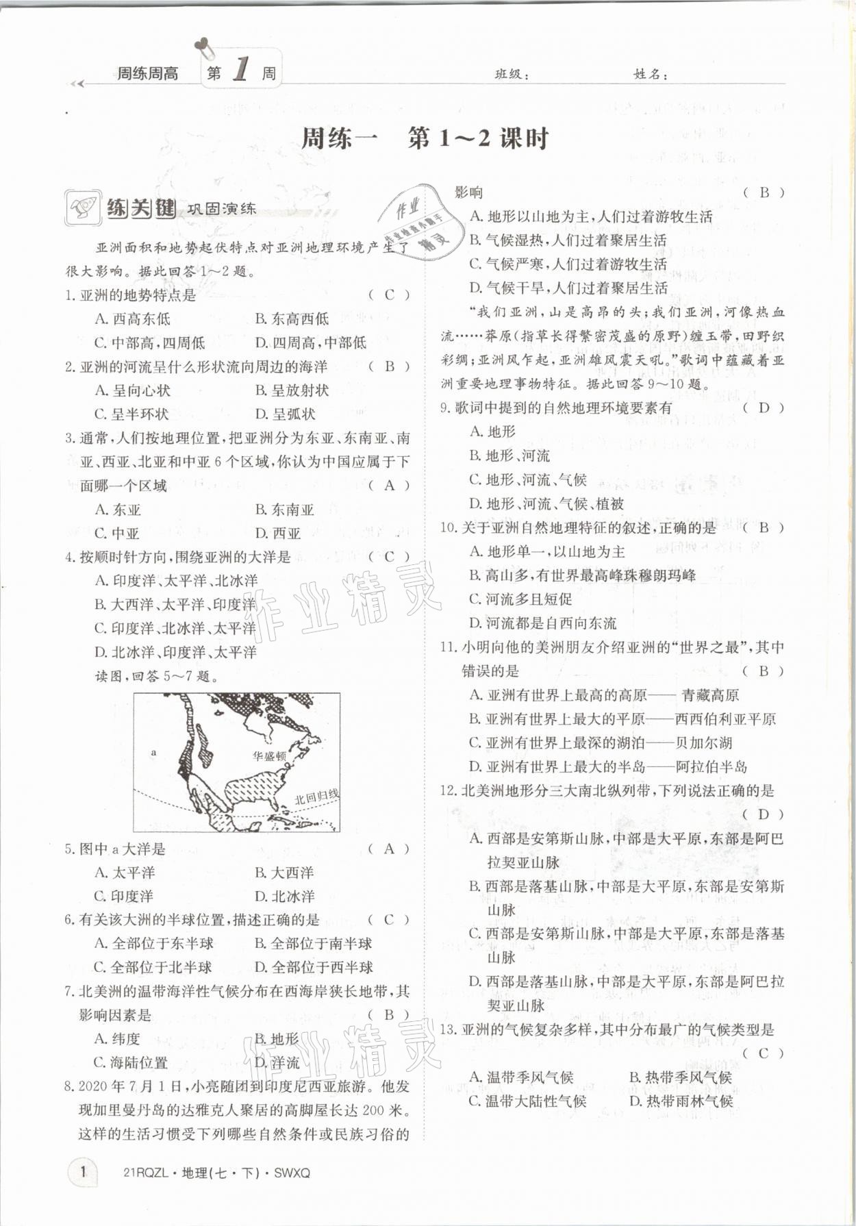注:目前有些书本章节名称可能整理的还不是很完善,但都是按照顺序排列的,请同学们按照顺序仔细查找。练习册 2021年日清周练七年级地理下册商务星球版 答案主要是用来给同学们做完题方便对答案用的,请勿直接抄袭。