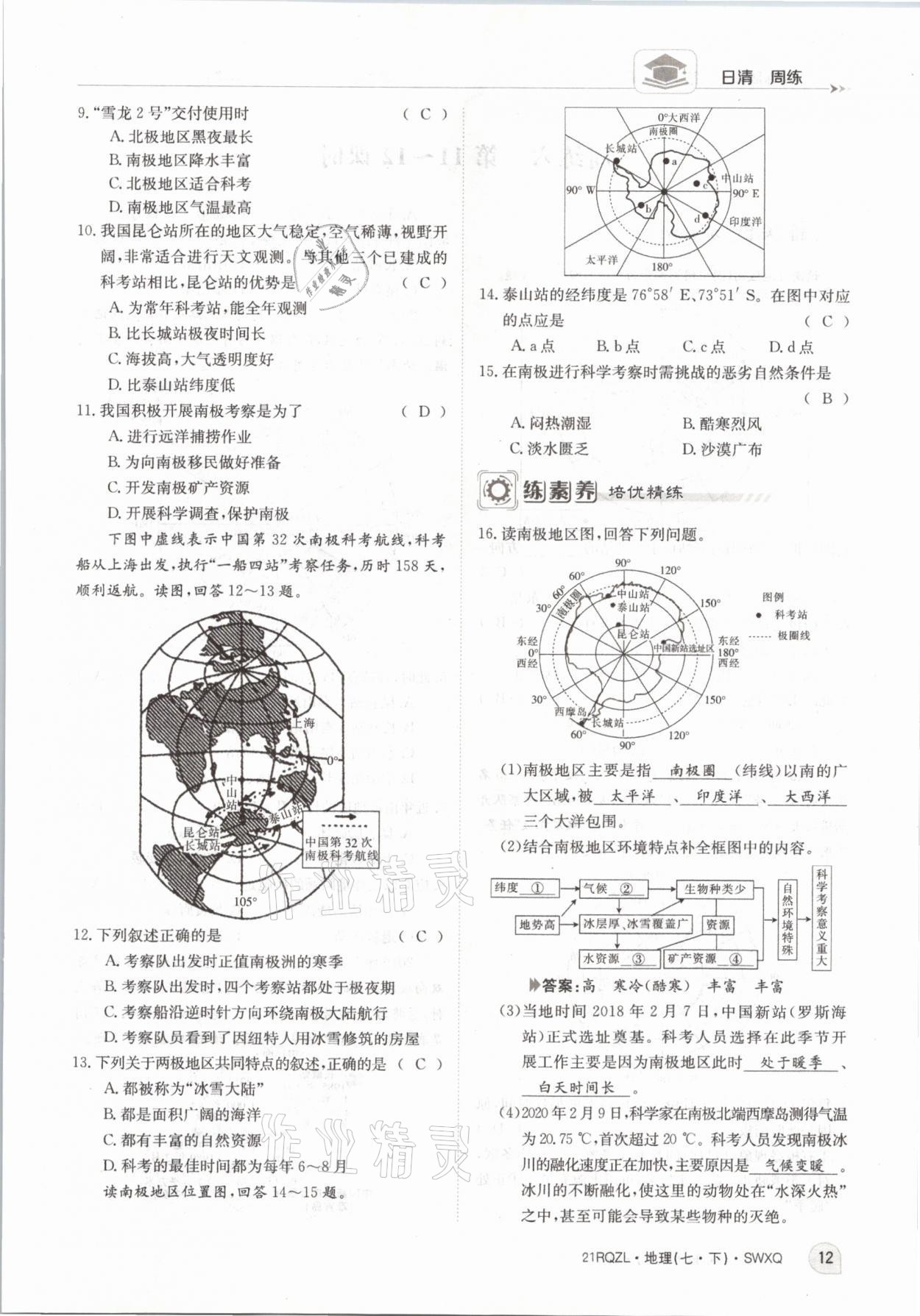 注:目前有些书本章节名称可能整理的还不是很完善,但都是按照顺序排列的,请同学们按照顺序仔细查找。练习册 2021年日清周练七年级地理下册商务星球版 答案主要是用来给同学们做完题方便对答案用的,请勿直接抄袭。