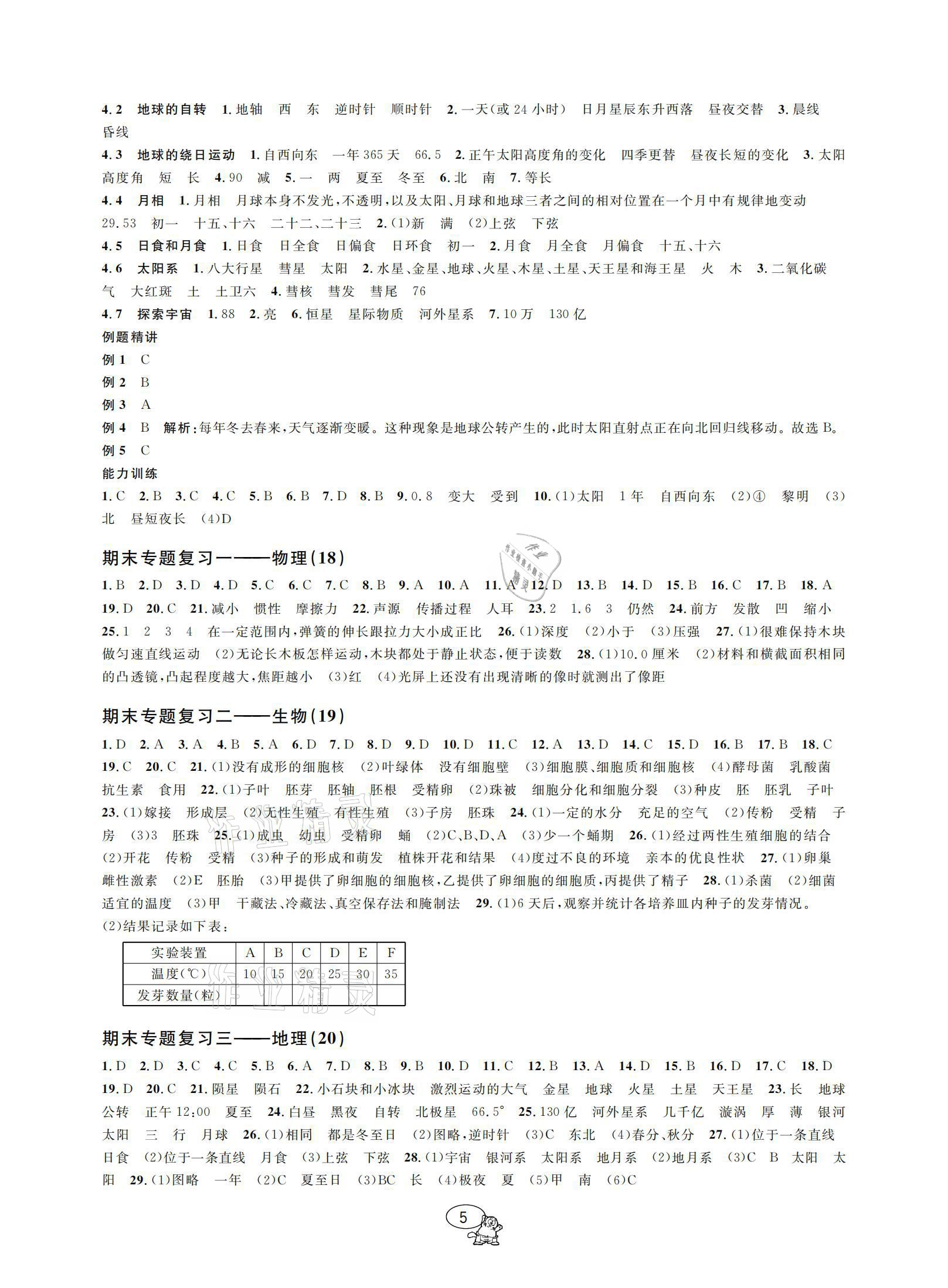 注:目前有些书本章节名称可能整理的还不是很完善,但都是按照顺序排列的,请同学们按照顺序仔细查找。练习册 2021年挑战100单元检测试卷七年级科学下册浙教版 答案主要是用来给同学们做完题方便对答案用的,请勿直接抄袭。