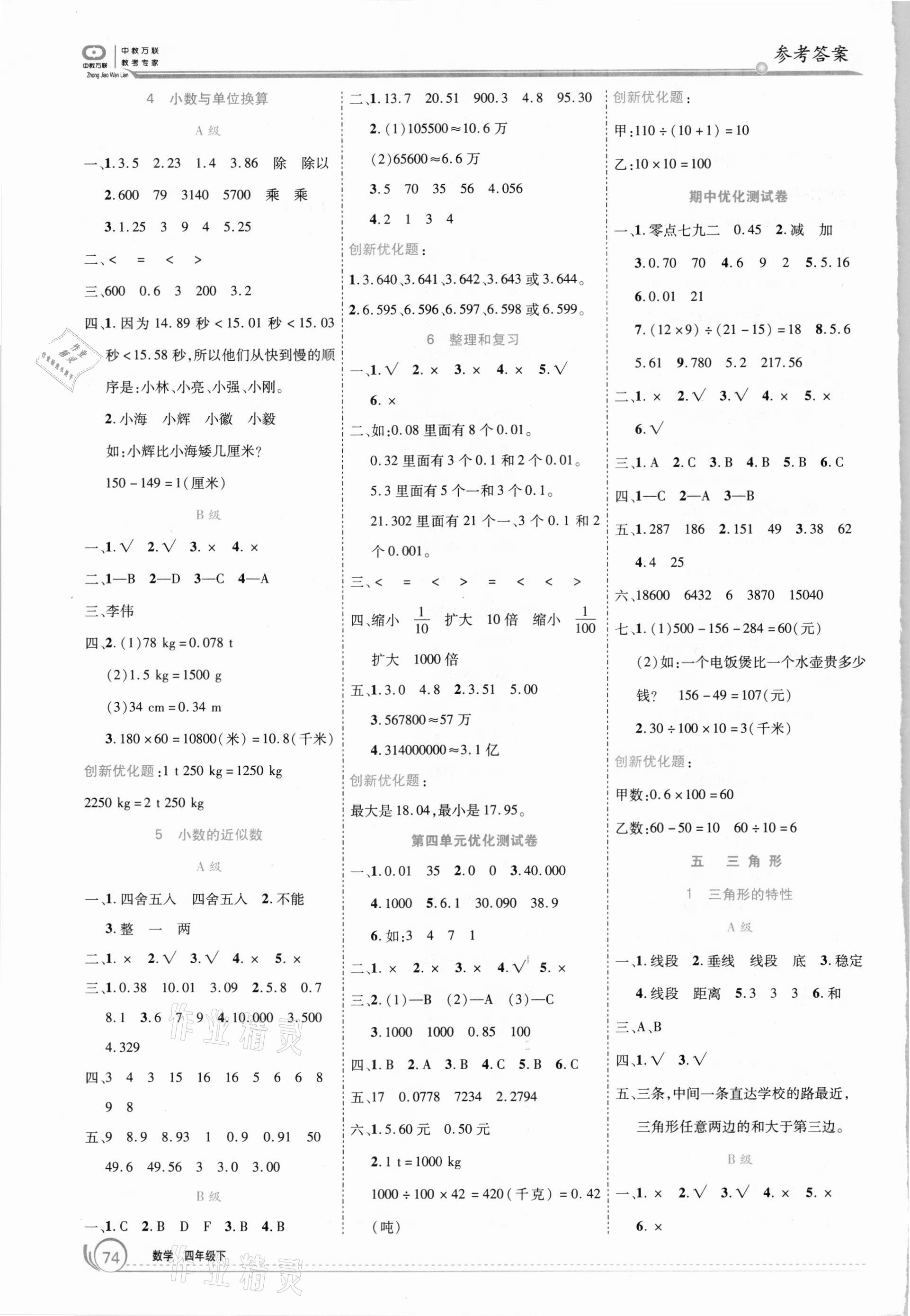 注:目前有些书本章节名称可能整理的还不是很完善,但都是按照顺序排列的,请同学们按照顺序仔细查找。练习册 2021年全优训练零失误优化作业本四年级数学下册人教版 答案主要是用来给同学们做完题方便对答案用的,请勿直接抄袭。