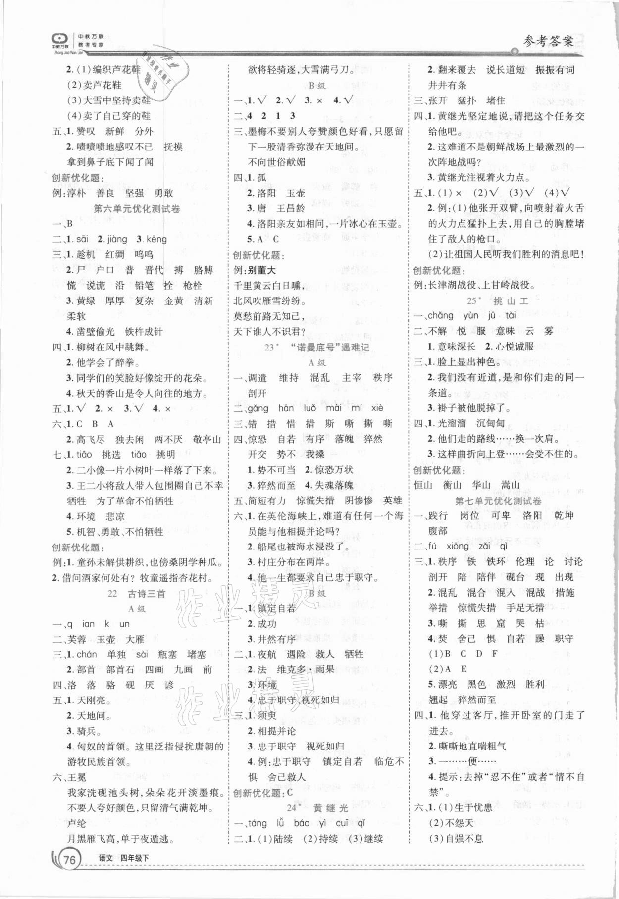 《2021年全优训练零失误优化作业本四年级语文下册人教版》