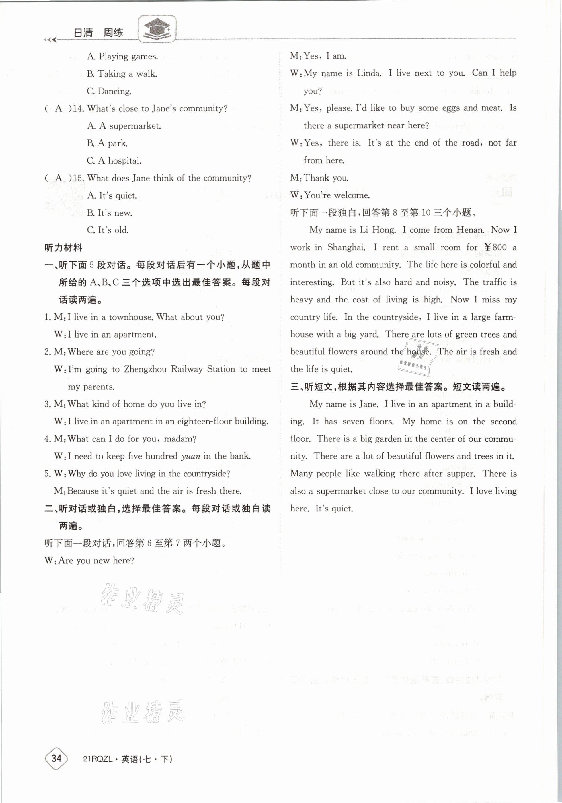 注:目前有些书本章节名称可能整理的还不是很完善,但都是按照顺序排列的,请同学们按照顺序仔细查找。练习册 2021年日清周练七年级英语下册外研版 答案主要是用来给同学们做完题方便对答案用的,请勿直接抄袭。