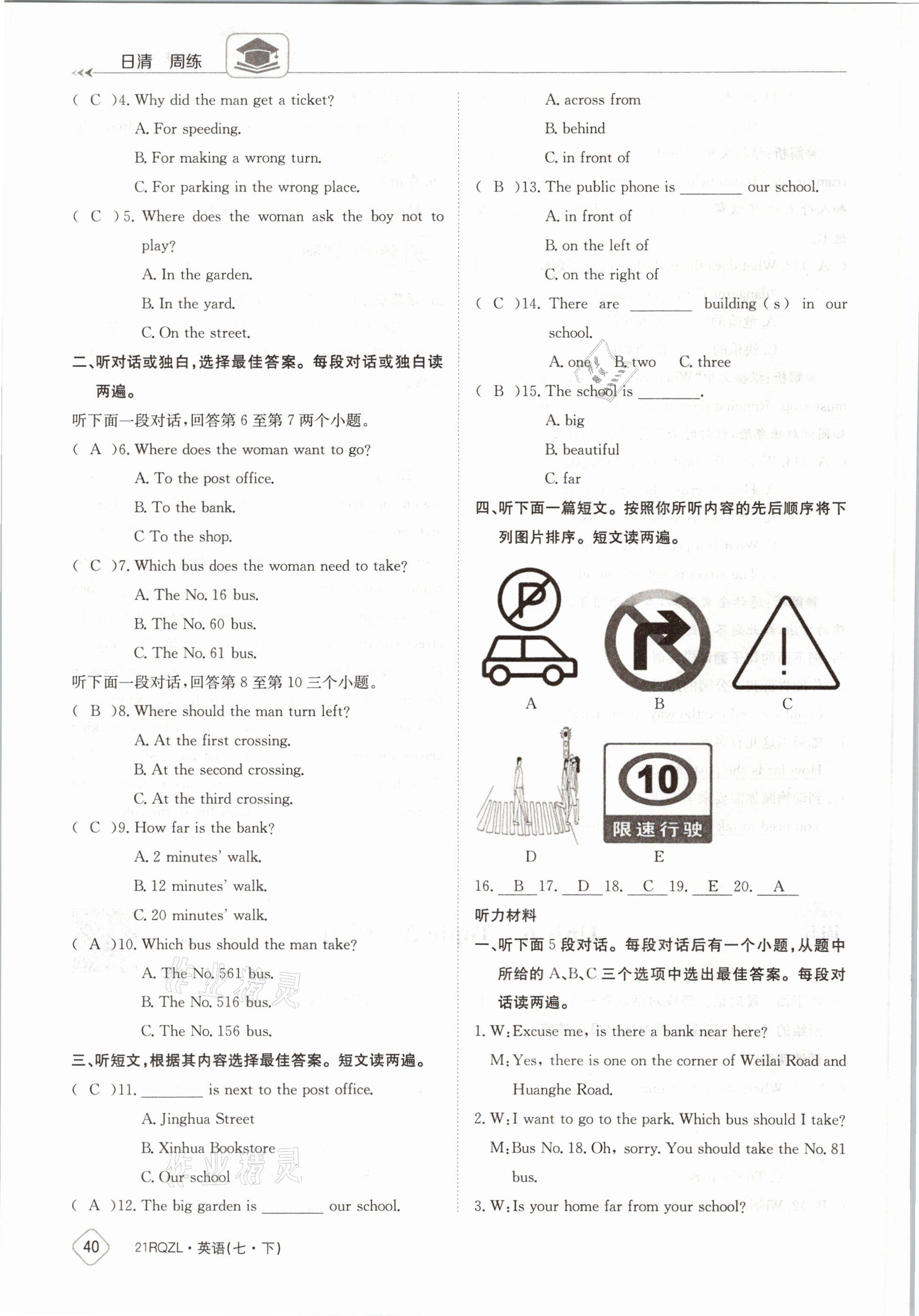 注:目前有些书本章节名称可能整理的还不是很完善,但都是按照顺序排列的,请同学们按照顺序仔细查找。练习册 2021年日清周练七年级英语下册外研版 答案主要是用来给同学们做完题方便对答案用的,请勿直接抄袭。