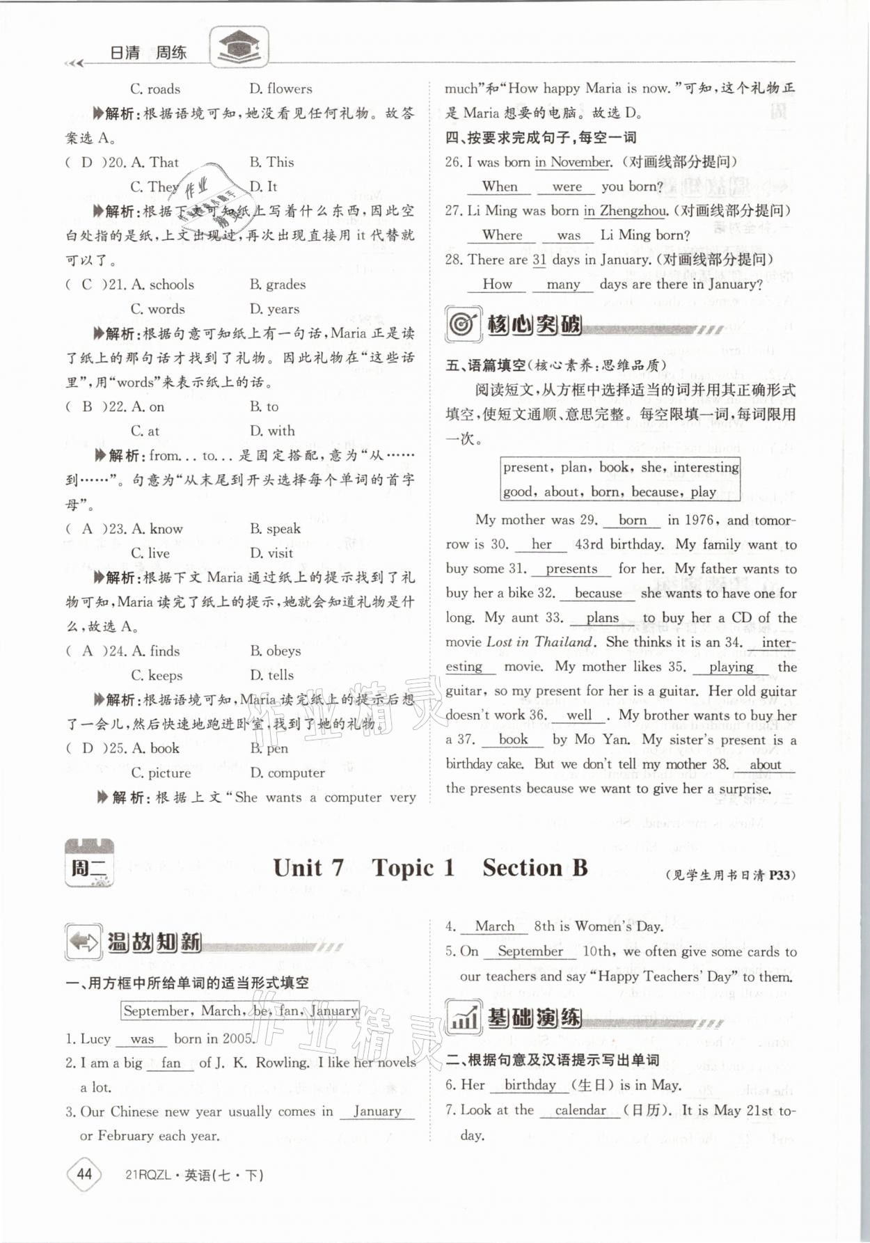 注:目前有些书本章节名称可能整理的还不是很完善,但都是按照顺序排列的,请同学们按照顺序仔细查找。练习册 2021年日清周练七年级英语下册外研版 答案主要是用来给同学们做完题方便对答案用的,请勿直接抄袭。
