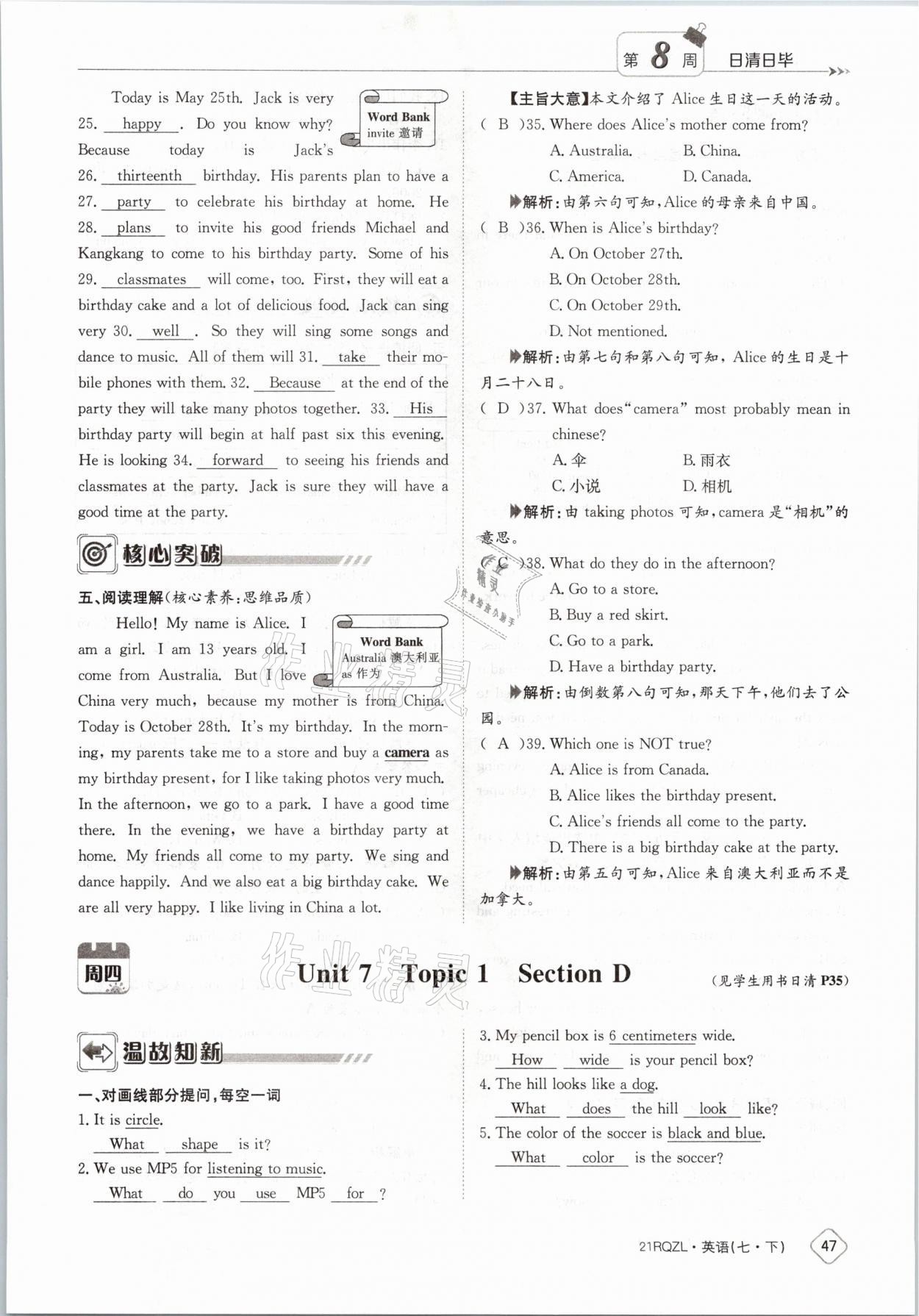 注:目前有些书本章节名称可能整理的还不是很完善,但都是按照顺序排列的,请同学们按照顺序仔细查找。练习册 2021年日清周练七年级英语下册外研版 答案主要是用来给同学们做完题方便对答案用的,请勿直接抄袭。