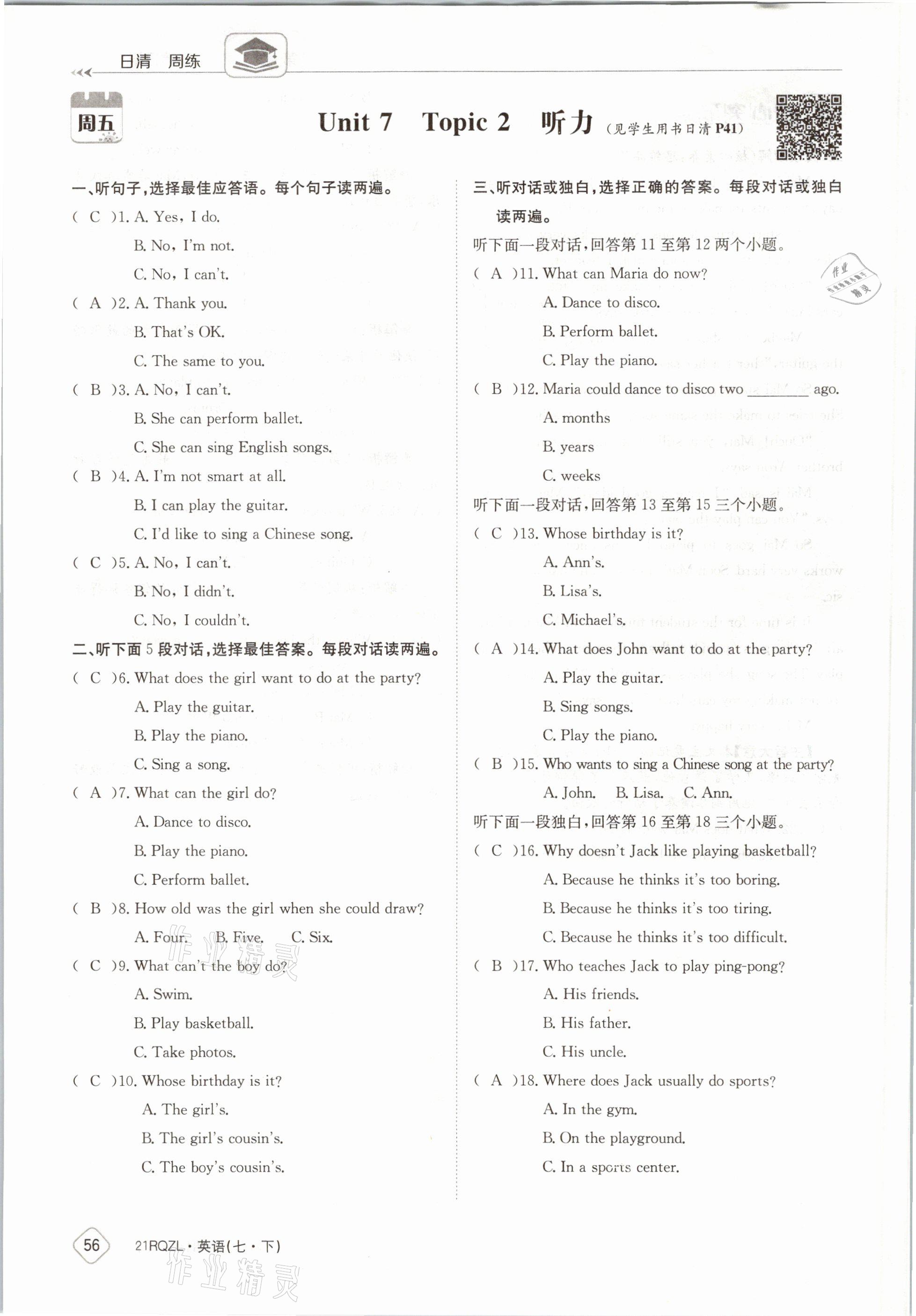 - 参考答案第56页