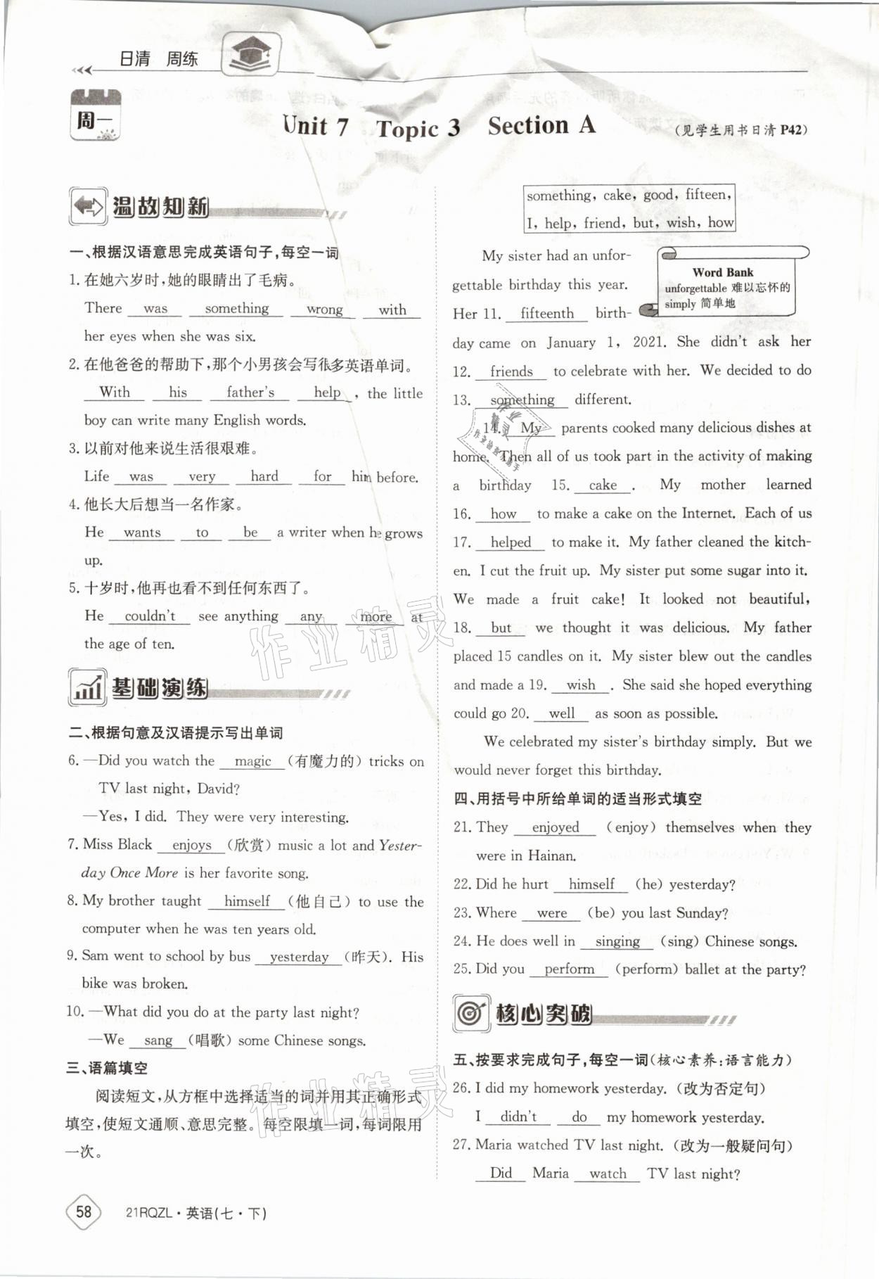 注:目前有些书本章节名称可能整理的还不是很完善,但都是按照顺序排列的,请同学们按照顺序仔细查找。练习册 2021年日清周练七年级英语下册外研版 答案主要是用来给同学们做完题方便对答案用的,请勿直接抄袭。