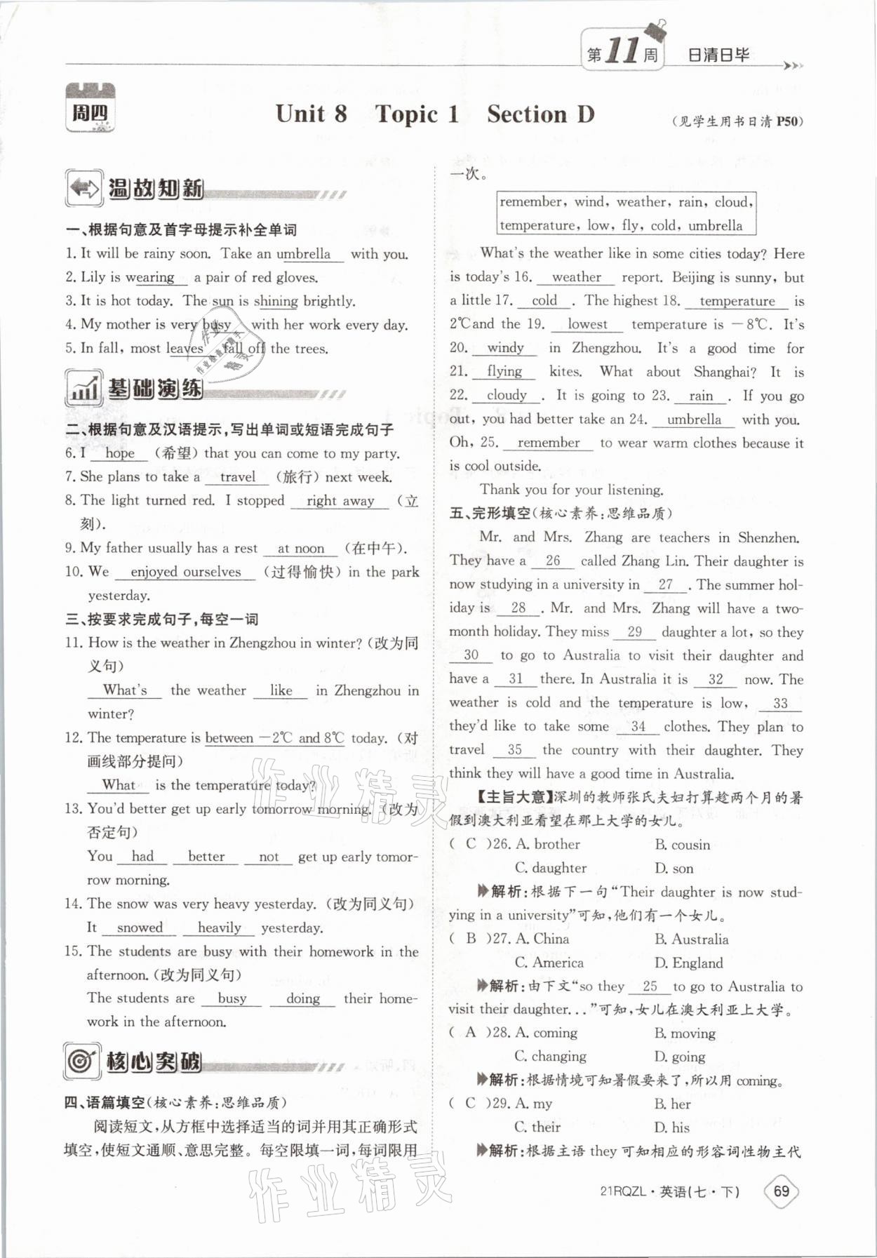 注:目前有些书本章节名称可能整理的还不是很完善,但都是按照顺序排列的,请同学们按照顺序仔细查找。练习册 2021年日清周练七年级英语下册外研版 答案主要是用来给同学们做完题方便对答案用的,请勿直接抄袭。