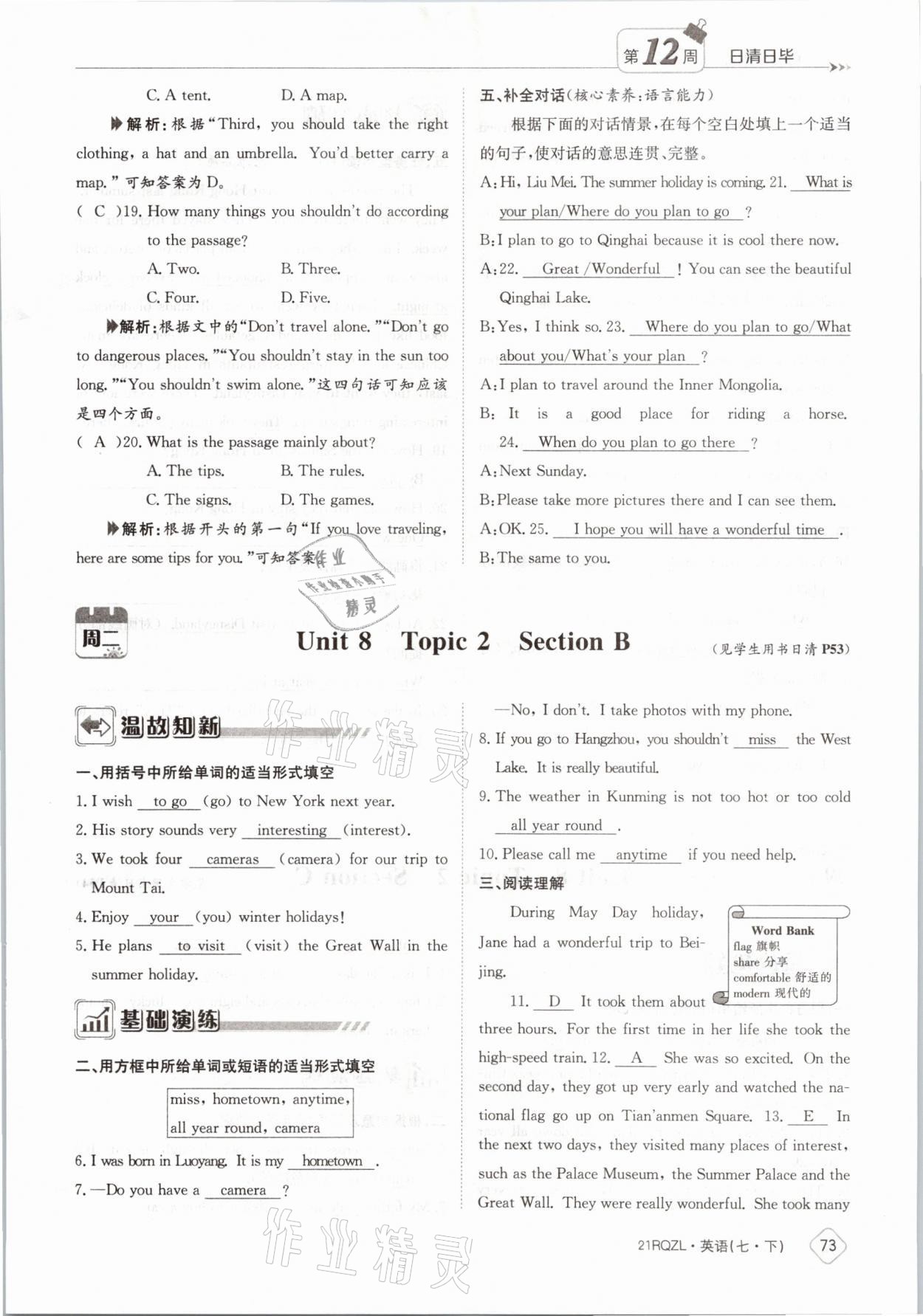 注:目前有些书本章节名称可能整理的还不是很完善,但都是按照顺序排列的,请同学们按照顺序仔细查找。练习册 2021年日清周练七年级英语下册外研版 答案主要是用来给同学们做完题方便对答案用的,请勿直接抄袭。