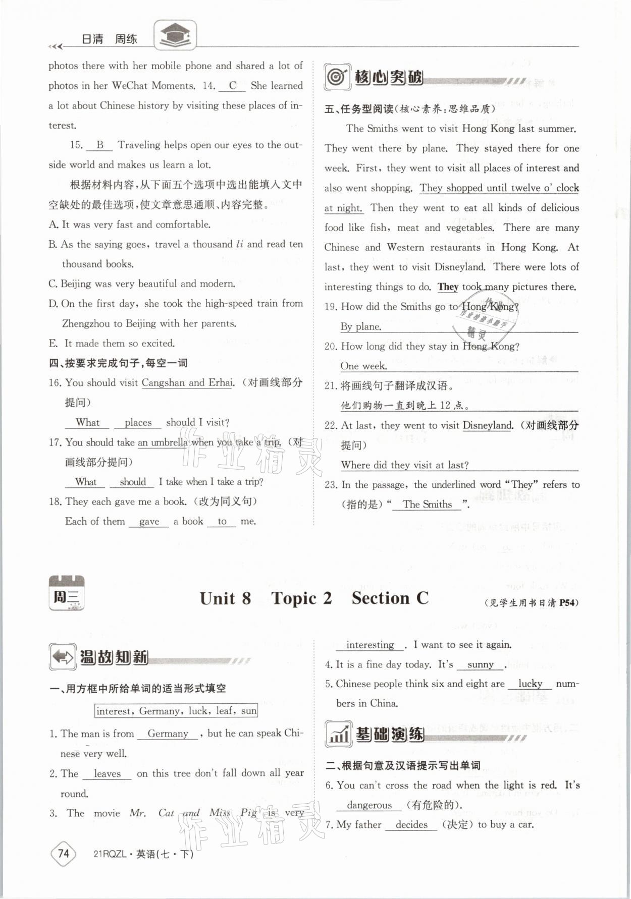 注:目前有些书本章节名称可能整理的还不是很完善,但都是按照顺序排列的,请同学们按照顺序仔细查找。练习册 2021年日清周练七年级英语下册外研版 答案主要是用来给同学们做完题方便对答案用的,请勿直接抄袭。