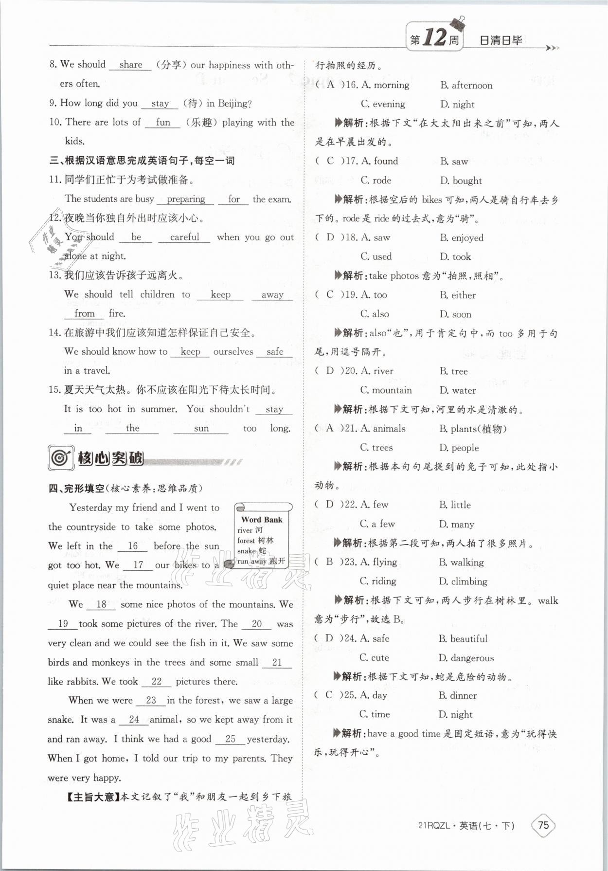 注:目前有些书本章节名称可能整理的还不是很完善,但都是按照顺序排列的,请同学们按照顺序仔细查找。练习册 2021年日清周练七年级英语下册外研版 答案主要是用来给同学们做完题方便对答案用的,请勿直接抄袭。