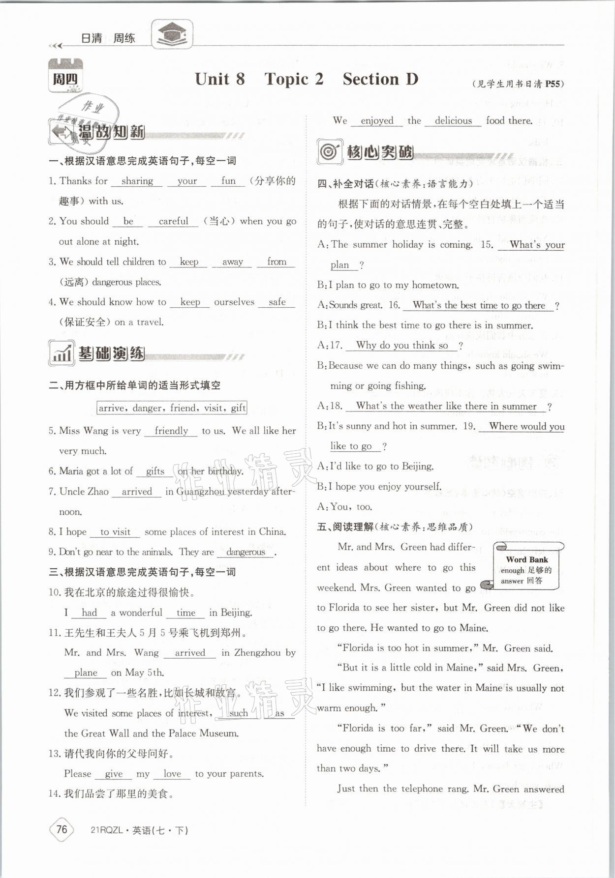 注:目前有些书本章节名称可能整理的还不是很完善,但都是按照顺序排列的,请同学们按照顺序仔细查找。练习册 2021年日清周练七年级英语下册外研版 答案主要是用来给同学们做完题方便对答案用的,请勿直接抄袭。