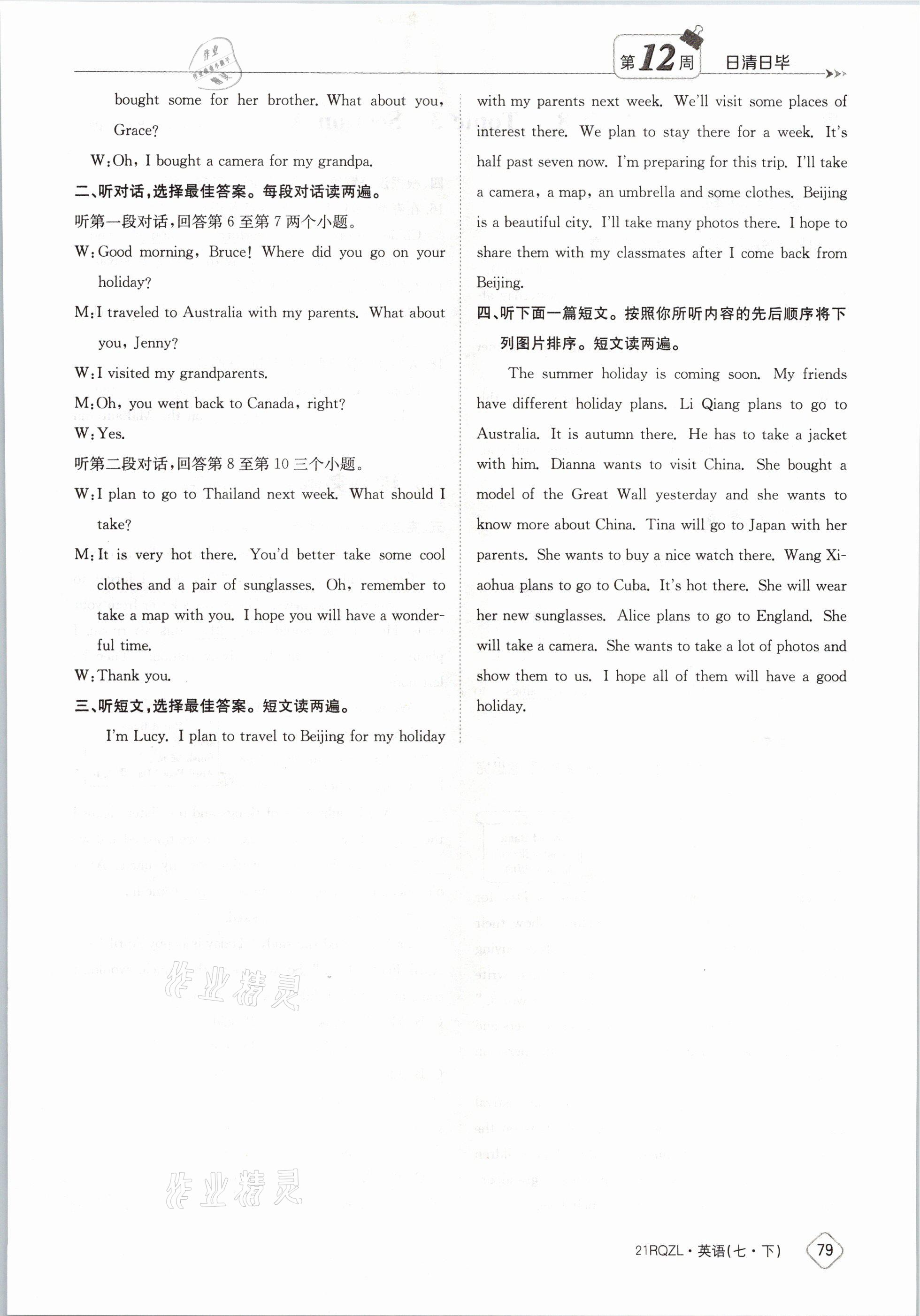 注:目前有些书本章节名称可能整理的还不是很完善,但都是按照顺序排列的,请同学们按照顺序仔细查找。练习册 2021年日清周练七年级英语下册外研版 答案主要是用来给同学们做完题方便对答案用的,请勿直接抄袭。
