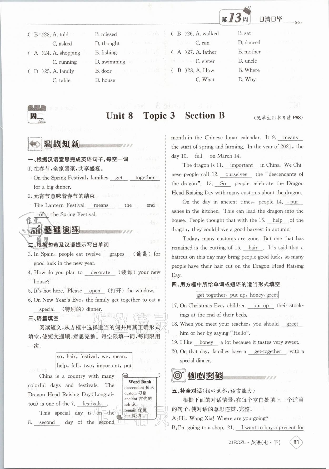 注:目前有些书本章节名称可能整理的还不是很完善,但都是按照顺序排列的,请同学们按照顺序仔细查找。练习册 2021年日清周练七年级英语下册外研版 答案主要是用来给同学们做完题方便对答案用的,请勿直接抄袭。