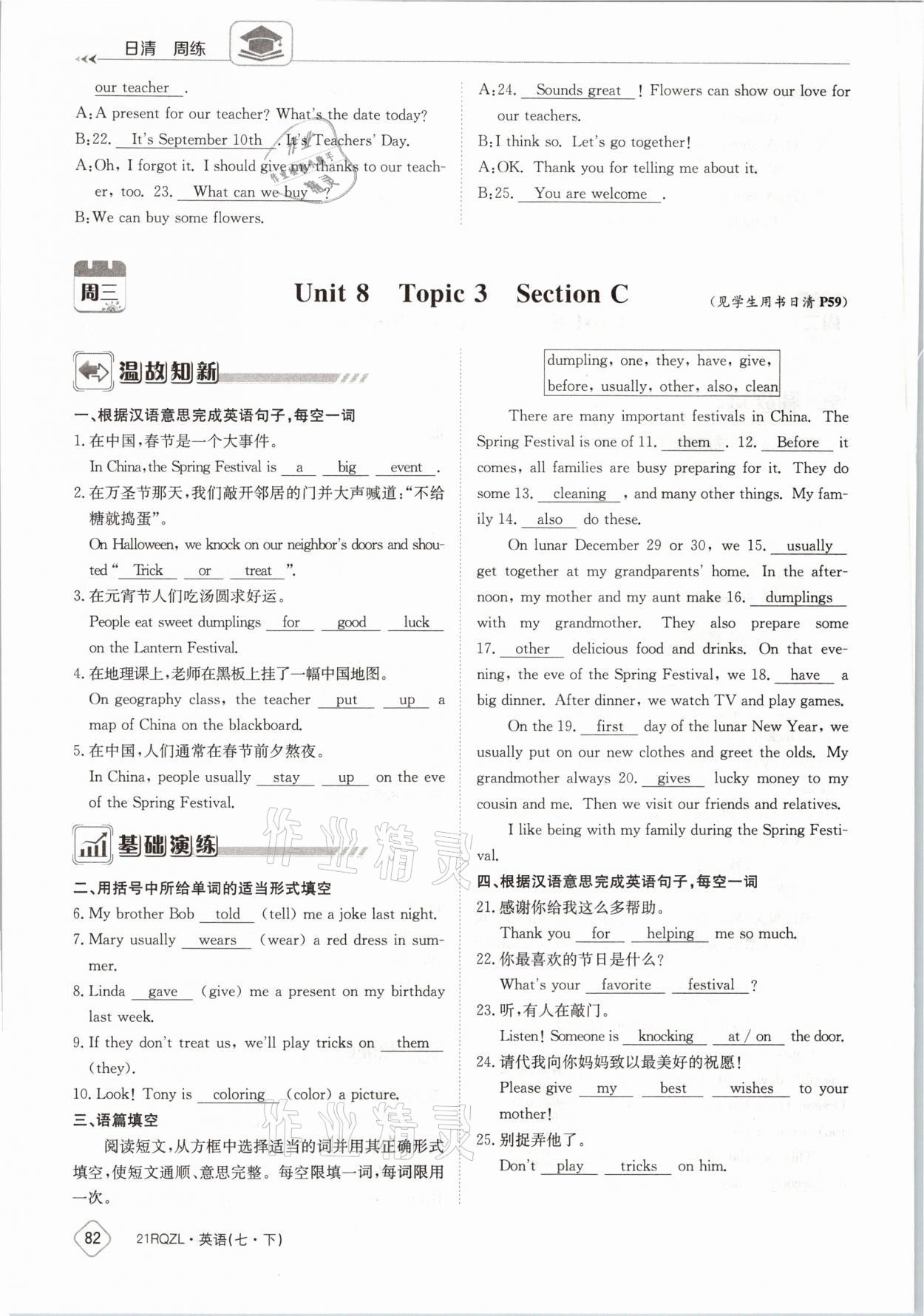 注:目前有些书本章节名称可能整理的还不是很完善,但都是按照顺序排列的,请同学们按照顺序仔细查找。练习册 2021年日清周练七年级英语下册外研版 答案主要是用来给同学们做完题方便对答案用的,请勿直接抄袭。