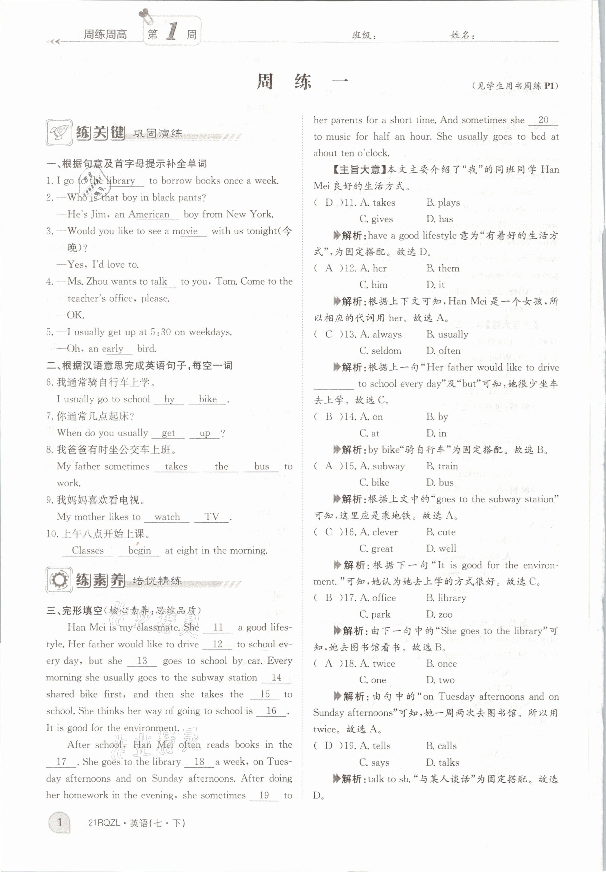 注:目前有些书本章节名称可能整理的还不是很完善,但都是按照顺序排列的,请同学们按照顺序仔细查找。练习册 2021年日清周练七年级英语下册外研版 答案主要是用来给同学们做完题方便对答案用的,请勿直接抄袭。
