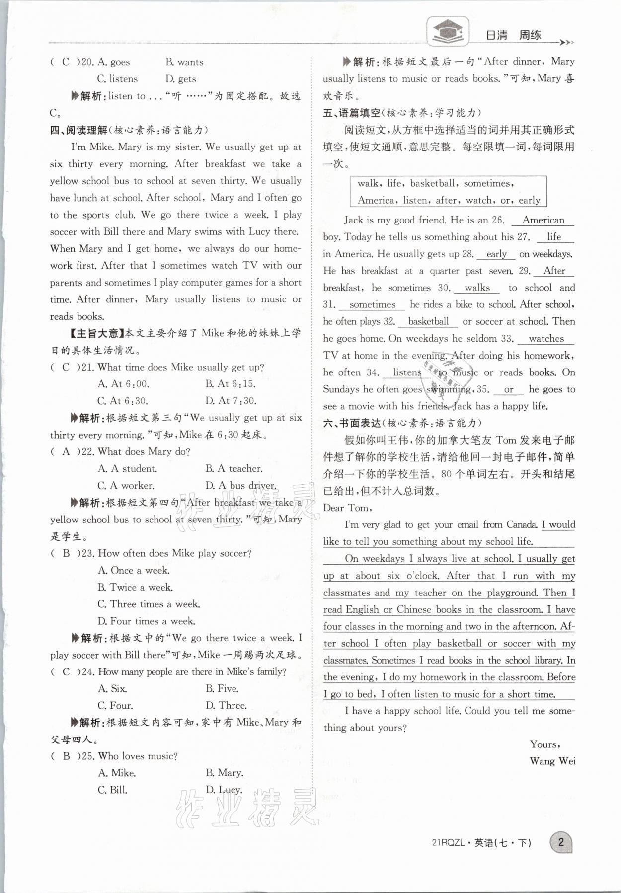 注:目前有些书本章节名称可能整理的还不是很完善,但都是按照顺序排列的,请同学们按照顺序仔细查找。练习册 2021年日清周练七年级英语下册外研版 答案主要是用来给同学们做完题方便对答案用的,请勿直接抄袭。